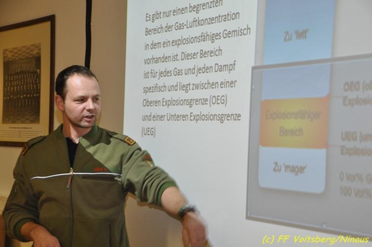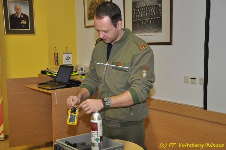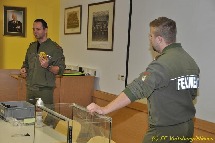 VOITSBERG, am 19.02.2018 Die beiden Verantwortlichen für gefährliche Stoffe des BFV Voitsberg, BI d.F. Philipp Krenn und BM d. F. Harald Kremaucz, hielten am Montag, dem 19. Februar 2018 für die KameradInnen der Freiwilligen Stadtfeuerwehr Voitsberg als zuständige Stützpunktfeuerwehr einen Vortrag. Dieser beinhaltete die Vorgangsweise bei Einsätzen, den Gefahren für die Einsatzkräfte bei Nichteinhaltung der Vorschriften, die richtigen Einsatztaktiken bei diversen Schadstoffen und im speziellen die Vorstellung des Mehrgaswarngerätes Quattro. Die Anwendung dieser sehr wichtigen Hilfe im Einsatz wurde auch in einer Demonstration gezeigt. Es wurden aus diesem Vortrag einige neue Erkenntnisse für die Einsatzführung gewonnen und den Vortragenden gedankt. Text und Fotos: Walter Ninaus, FF Voitsberg