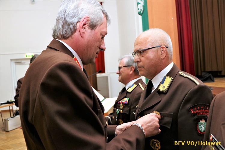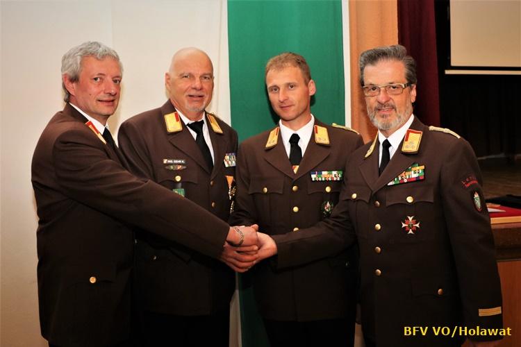 VOITSBERG, am 27.04.2018 Unser Wehrkommandant Ing. Klaus GEHR wurde im Festsaal Rosental mit großer Mehrheit zum Brandrat des BFV Voitsberg gewählt und wird in den nächsten fünf Jahren gemeinsam mit dem ebenfalls neu gewählten Oberbrandrat Christian Leitgeb an der Spitze des BFV Voitsberg stehen. Die Kameraden Hendrik Wolf wurde zum HBI d. V. und Harald Kremaucz zum BI d. F. befördert. Des Weiteren wurde Klaus Gehr mit dem Verdienstzeichen 2. Stufe des ÖBFV und Hendrik Wolf mit dem Verdienstzeichen 2. Stufe des BFV Voitsberg ausgezeichnet. Die Mannschaft der FF Voitsberg gratuliert den Kameraden herzlich