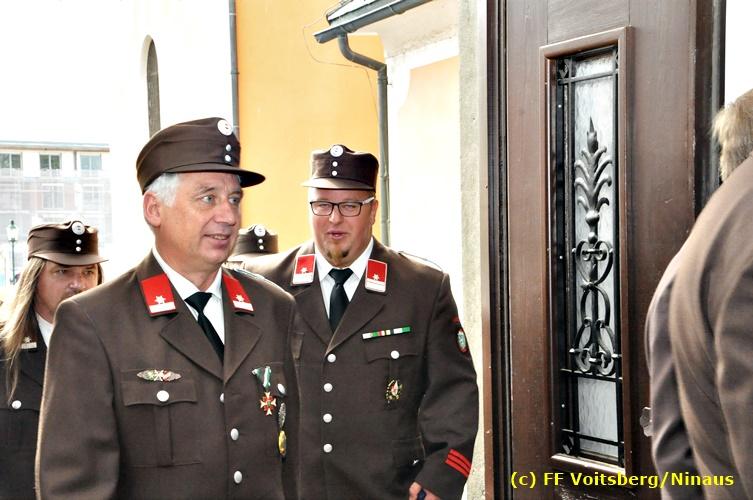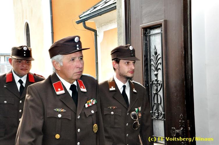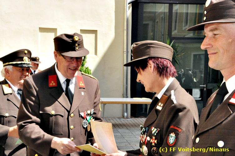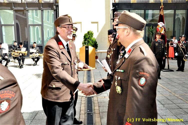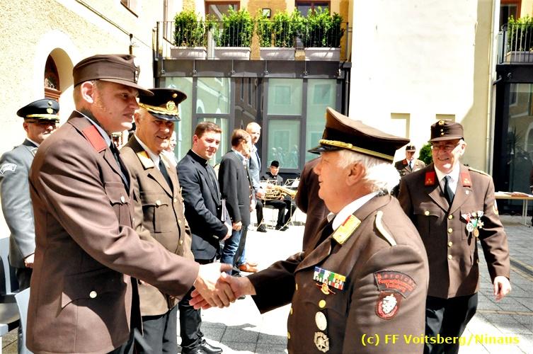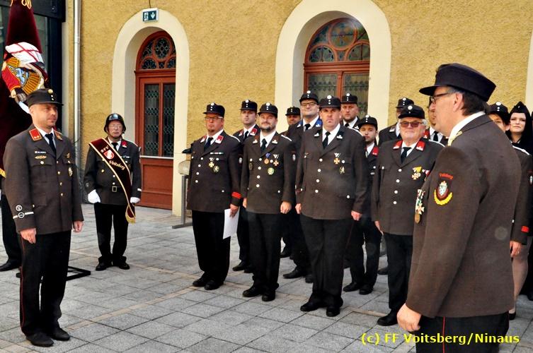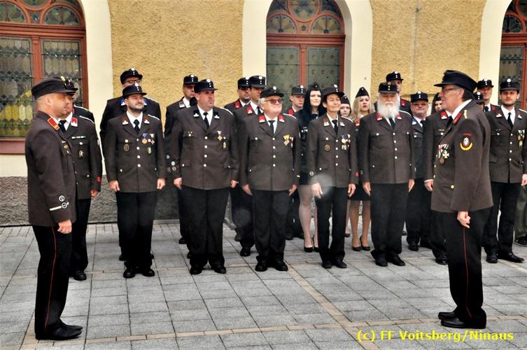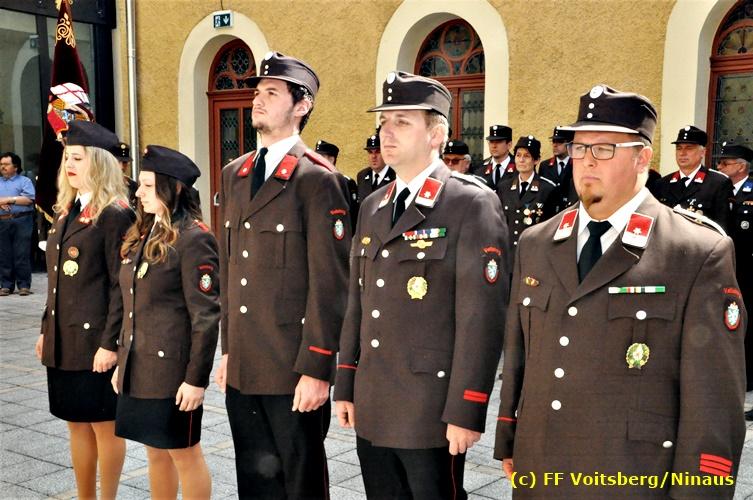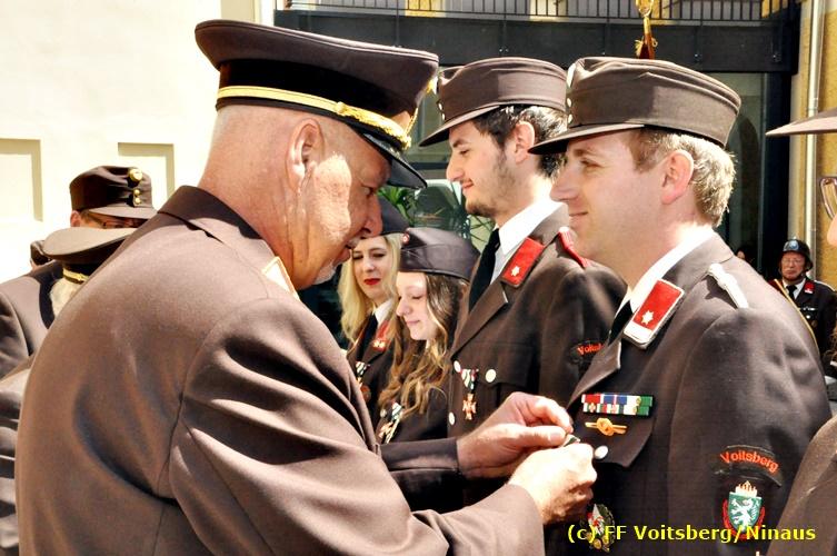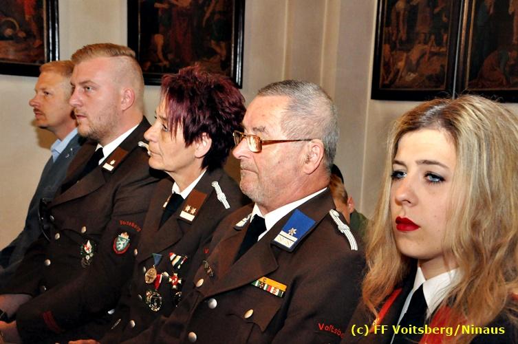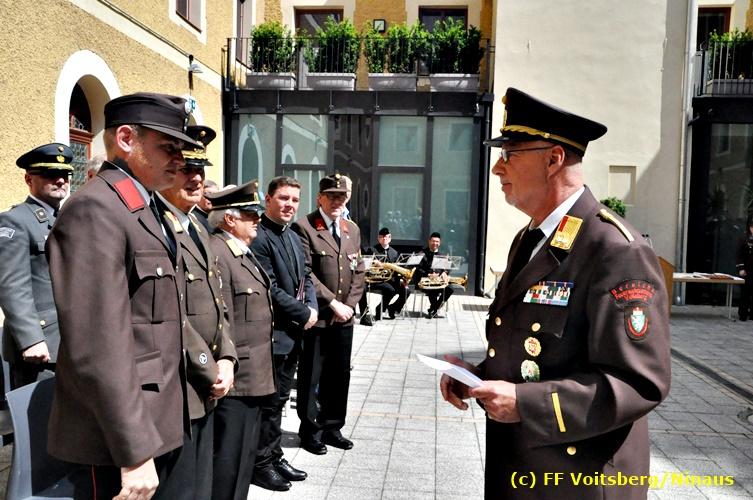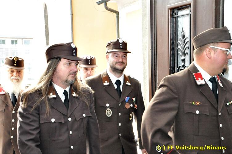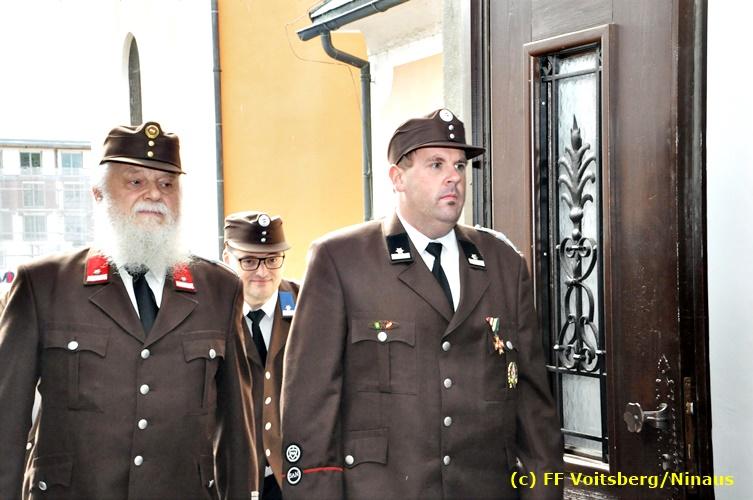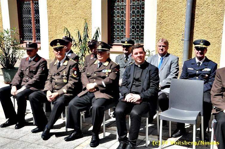 Der Festtag für die Feuerwehren, der Florianitag, wurde heuer am Sonntag, dem 6. Mai 2018 von der FF Voitsberg mit dem gewohnten Programm gefeiert. Die Florianimesse, nach dem Einmarsch der KameradInnen feierlich zelebriert von Kaplan Adrian Aileni und musikalisch umrahmt von einem Bläserensemble der Bergkapelle Hödlgrube-Zangtal war der erste Höhepunkt dieses Sonntages. Unser Mitglied und gleichzeitig Pastoralassistent der Pfarre Martin Rapp und Kaplan Adrian Aileni würdigten in berührenden Ansprachen die Leistungen der Feuerwehr, welche mit Applaus der Besucher des Gottesdienstes bedacht wurden. Im Anschluss fand im Klosterhof, dem Innenhof der Pfarre, der offizielle Teil des Florianitages statt. Wehrkommandant BR Ing. Klaus Gehr konnte eine Reihe von Ehrengästen begrüßen: Bürgermeister EHBI Ernst Meixner, Kaplan Adrian Aileni, die Vizebürgermeister Kurt Christof und Walter Gaich, Stadtrat Markus Leinfellner, Bezirksgeschäftsführer des Roten Kreuzes Direktor Aldo Striccher, Bezirksstellenleiter des Zivilschutzverbandes Anton Schober, Obmann des Kameradschaftsbundes Günter Salmutter, Landesleiter der Steirischen Wasserrettung Ing. Mag. DI (FH) Kurt Rath, Staffelführer der ÖRHB Hermann Truschnig, Franz Patz von den Amateurfunkern, Abschnittsfeuerwehrkommandant ABI Alfred Jauk und im speziellen unsere Ehrendienstgrade EABI Rudolf Gargitter und ELM Richard Waidacher. Nach Dankesworten durch den Wehrkommandanten an die Mannschaft und an die Stadtgemeinde für die Unterstützung wurde unser Mitglied Michael Kaschel angelobt. Ein weiterer erfreulicher Programmpunkt waren nachstehende Beförderungen und Auszeichnungen: Befördert wurden die Jungfeuerwehrmänner Kilian Kranabether, Jonathan Rapp, Marvin Wintscher, Philip Schmelzer und Diemo Acham. Zum Feuerwehrmann: PFM Michael Kaschel Zum Oberfeuerwehrmann: FM Markus Roßmann Zum Löschmeister: HFM Markus Donnelly Zum Oberlöschmeister der Sanität: LMdS Christoph Amberger Zum Oberlöschmeister des Fachdienstes: LMdF Peter Kremaucz Zum Oberlöschmeister: LM Christian Buchegger Ausgezeichnet wurden: Verdienstmedaille FF Voitsberg für 10jährige Mitgliedschaft: BIdF Harald Kremaucz Verdienstkreuz in Bronze des BFV Voitsberg: LMdF Daniel Traußnigg, OFM Victoria Fink und OFM Daniela Reisinger Verdienstkreuz in Silber des BFV Voitsberg: BM Rene Sorger und LM Christian Buchegger Verdienstzeichen 3. Stufe in Bronze des LFV Steiermark: OLMdF Waltraud Veigl Ehrenzeichen des Landes Steiermark für 25jährighe Tätigkeit: LM Martin Rapp Diese Ehrungen wurden von BR Klaus Gehr, EHBI Bgm. Ernst Meixner und ABI Alfred Jauk überreicht. Bürgermeister Ernst Meixner bedankte sich in seiner Festansprache namens der Stadtgemeinde Voitsberg für die erbrachten Leistungen und sagte auch in Zukunft vollste Unterstützung zu. Moderiert in bewährter und gekonnter Weise wurde diese Veranstaltung von BI Karlheinz Buchegger. Mit dem Abspielen der Landeshymne durch eine Abordnung der Bergkapelle Hödlgrube-Zangtal wurde dieser würdevolle Florianitag im Klosterhof abgeschlossen. Ein Gruppenfoto mit allen Teilnehmern im wundervollen Ambiente des Klosterhofes wurde zum Schluss von Foto Koren angefertigt. Ein gemeinsames Mittagessen in den Voitsberger Stadtsälen rundete diesen für die Feuerwehren stolzen Feiertag ab. Fotos und Text: Walter Ninaus/FF Voitsberg