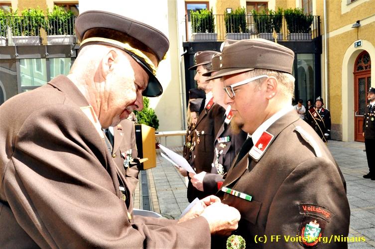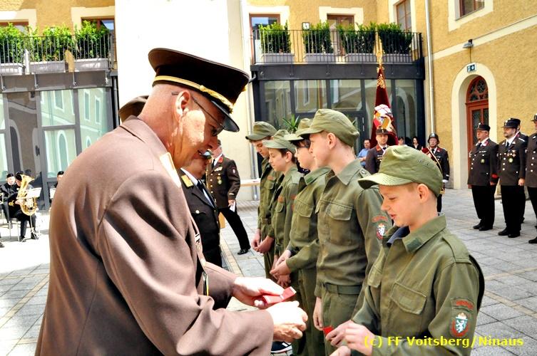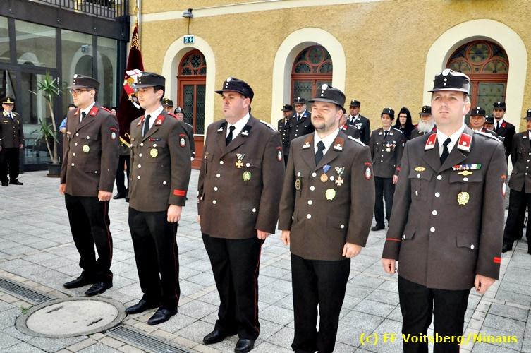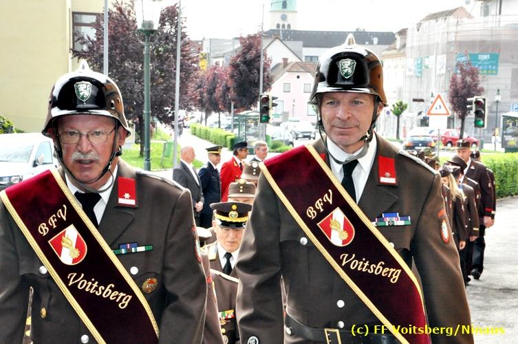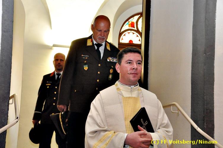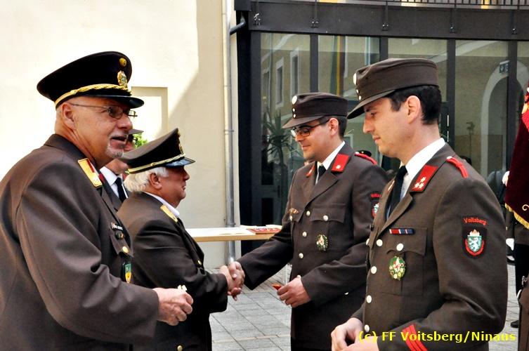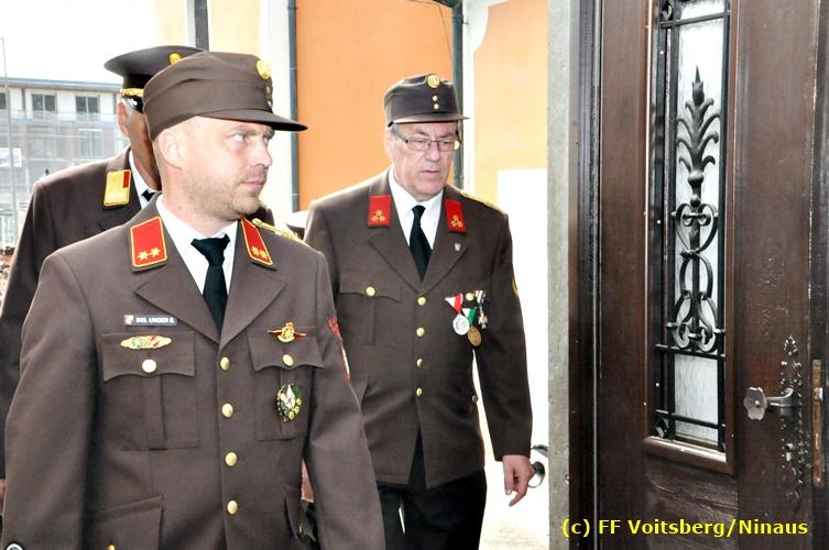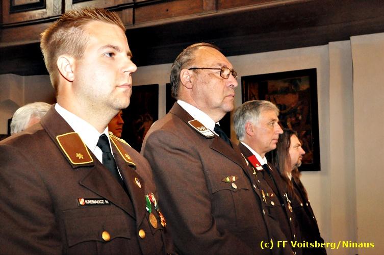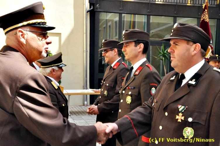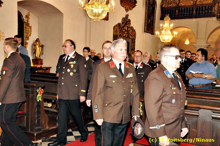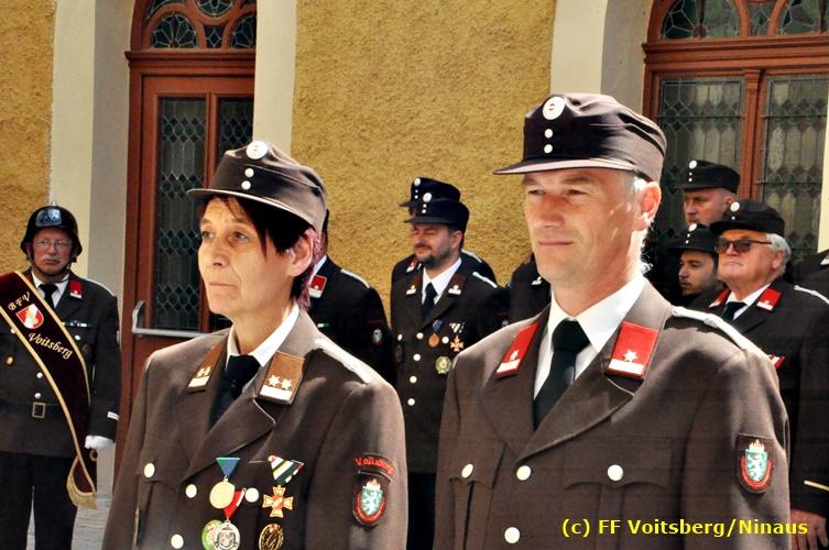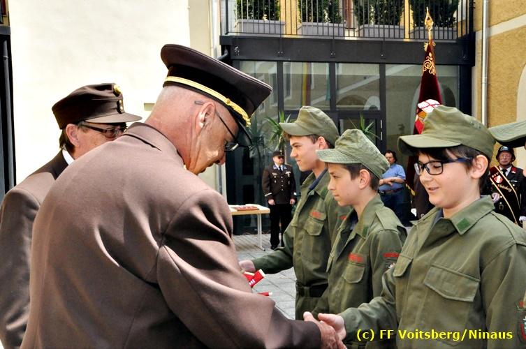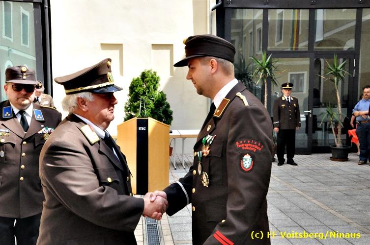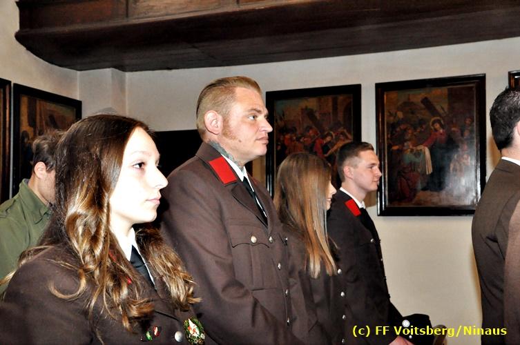 Der Festtag für die Feuerwehren, der Florianitag, wurde heuer am Sonntag, dem 6. Mai 2018 von der FF Voitsberg mit dem gewohnten Programm gefeiert. Die Florianimesse, nach dem Einmarsch der KameradInnen feierlich zelebriert von Kaplan Adrian Aileni und musikalisch umrahmt von einem Bläserensemble der Bergkapelle Hödlgrube-Zangtal war der erste Höhepunkt dieses Sonntages. Unser Mitglied und gleichzeitig Pastoralassistent der Pfarre Martin Rapp und Kaplan Adrian Aileni würdigten in berührenden Ansprachen die Leistungen der Feuerwehr, welche mit Applaus der Besucher des Gottesdienstes bedacht wurden. Im Anschluss fand im Klosterhof, dem Innenhof der Pfarre, der offizielle Teil des Florianitages statt. Wehrkommandant BR Ing. Klaus Gehr konnte eine Reihe von Ehrengästen begrüßen: Bürgermeister EHBI Ernst Meixner, Kaplan Adrian Aileni, die Vizebürgermeister Kurt Christof und Walter Gaich, Stadtrat Markus Leinfellner, Bezirksgeschäftsführer des Roten Kreuzes Direktor Aldo Striccher, Bezirksstellenleiter des Zivilschutzverbandes Anton Schober, Obmann des Kameradschaftsbundes Günter Salmutter, Landesleiter der Steirischen Wasserrettung Ing. Mag. DI (FH) Kurt Rath, Staffelführer der ÖRHB Hermann Truschnig, Franz Patz von den Amateurfunkern, Abschnittsfeuerwehrkommandant ABI Alfred Jauk und im speziellen unsere Ehrendienstgrade EABI Rudolf Gargitter und ELM Richard Waidacher. Nach Dankesworten durch den Wehrkommandanten an die Mannschaft und an die Stadtgemeinde für die Unterstützung wurde unser Mitglied Michael Kaschel angelobt. Ein weiterer erfreulicher Programmpunkt waren nachstehende Beförderungen und Auszeichnungen: Befördert wurden die Jungfeuerwehrmänner Kilian Kranabether, Jonathan Rapp, Marvin Wintscher, Philip Schmelzer und Diemo Acham. Zum Feuerwehrmann: PFM Michael Kaschel Zum Oberfeuerwehrmann: FM Markus Roßmann Zum Löschmeister: HFM Markus Donnelly Zum Oberlöschmeister der Sanität: LMdS Christoph Amberger Zum Oberlöschmeister des Fachdienstes: LMdF Peter Kremaucz Zum Oberlöschmeister: LM Christian Buchegger Ausgezeichnet wurden: Verdienstmedaille FF Voitsberg für 10jährige Mitgliedschaft: BIdF Harald Kremaucz Verdienstkreuz in Bronze des BFV Voitsberg: LMdF Daniel Traußnigg, OFM Victoria Fink und OFM Daniela Reisinger Verdienstkreuz in Silber des BFV Voitsberg: BM Rene Sorger und LM Christian Buchegger Verdienstzeichen 3. Stufe in Bronze des LFV Steiermark: OLMdF Waltraud Veigl Ehrenzeichen des Landes Steiermark für 25jährighe Tätigkeit: LM Martin Rapp Diese Ehrungen wurden von BR Klaus Gehr, EHBI Bgm. Ernst Meixner und ABI Alfred Jauk überreicht. Bürgermeister Ernst Meixner bedankte sich in seiner Festansprache namens der Stadtgemeinde Voitsberg für die erbrachten Leistungen und sagte auch in Zukunft vollste Unterstützung zu. Moderiert in bewährter und gekonnter Weise wurde diese Veranstaltung von BI Karlheinz Buchegger. Mit dem Abspielen der Landeshymne durch eine Abordnung der Bergkapelle Hödlgrube-Zangtal wurde dieser würdevolle Florianitag im Klosterhof abgeschlossen. Ein Gruppenfoto mit allen Teilnehmern im wundervollen Ambiente des Klosterhofes wurde zum Schluss von Foto Koren angefertigt. Ein gemeinsames Mittagessen in den Voitsberger Stadtsälen rundete diesen für die Feuerwehren stolzen Feiertag ab. Fotos und Text: Walter Ninaus/FF Voitsberg