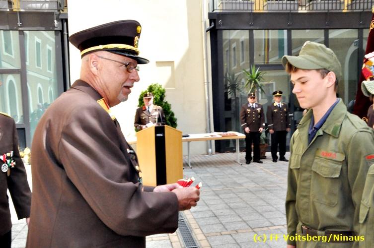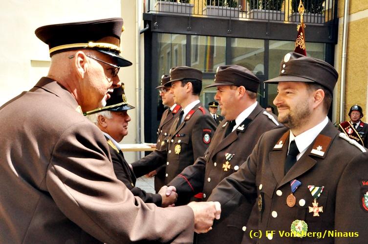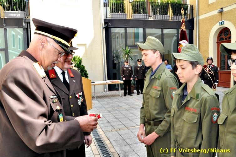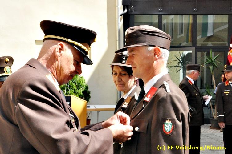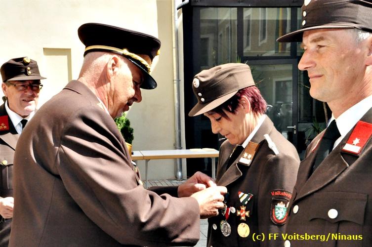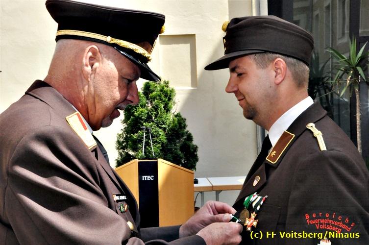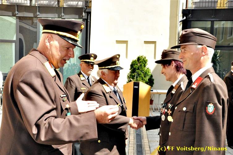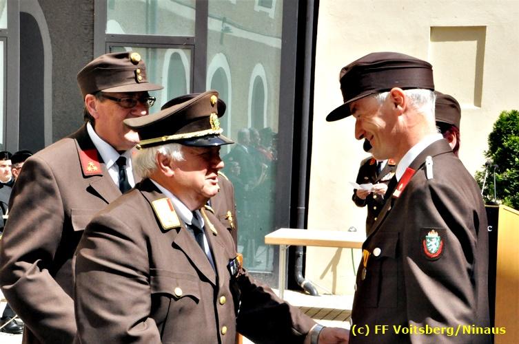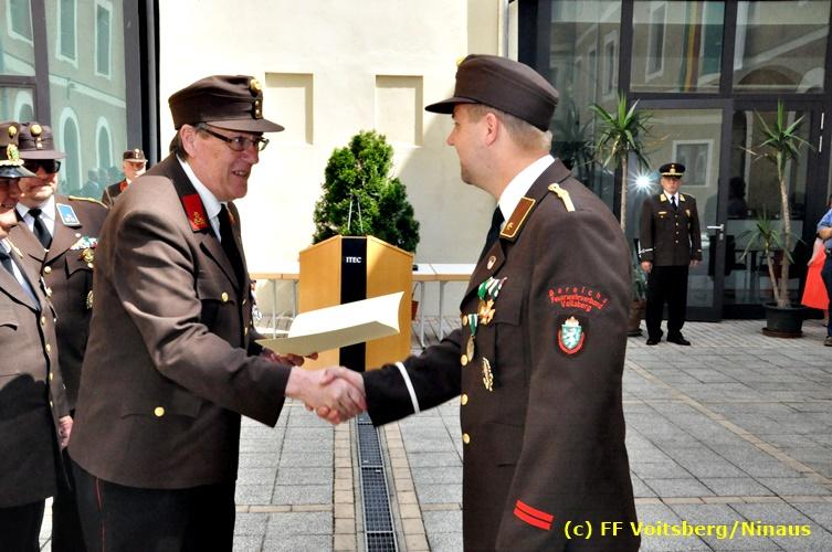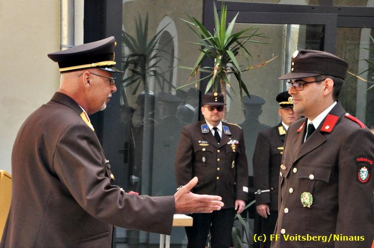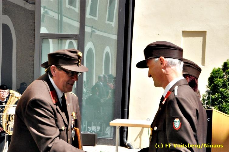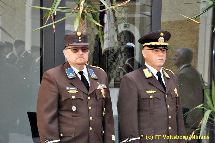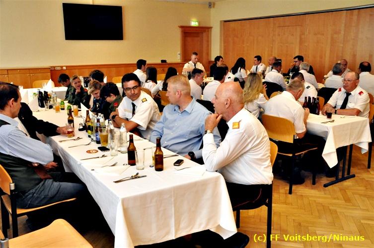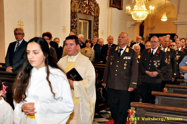 Der Festtag für die Feuerwehren, der Florianitag, wurde heuer am Sonntag, dem 6. Mai 2018 von der FF Voitsberg mit dem gewohnten Programm gefeiert. Die Florianimesse, nach dem Einmarsch der KameradInnen feierlich zelebriert von Kaplan Adrian Aileni und musikalisch umrahmt von einem Bläserensemble der Bergkapelle Hödlgrube-Zangtal war der erste Höhepunkt dieses Sonntages. Unser Mitglied und gleichzeitig Pastoralassistent der Pfarre Martin Rapp und Kaplan Adrian Aileni würdigten in berührenden Ansprachen die Leistungen der Feuerwehr, welche mit Applaus der Besucher des Gottesdienstes bedacht wurden. Im Anschluss fand im Klosterhof, dem Innenhof der Pfarre, der offizielle Teil des Florianitages statt. Wehrkommandant BR Ing. Klaus Gehr konnte eine Reihe von Ehrengästen begrüßen: Bürgermeister EHBI Ernst Meixner, Kaplan Adrian Aileni, die Vizebürgermeister Kurt Christof und Walter Gaich, Stadtrat Markus Leinfellner, Bezirksgeschäftsführer des Roten Kreuzes Direktor Aldo Striccher, Bezirksstellenleiter des Zivilschutzverbandes Anton Schober, Obmann des Kameradschaftsbundes Günter Salmutter, Landesleiter der Steirischen Wasserrettung Ing. Mag. DI (FH) Kurt Rath, Staffelführer der ÖRHB Hermann Truschnig, Franz Patz von den Amateurfunkern, Abschnittsfeuerwehrkommandant ABI Alfred Jauk und im speziellen unsere Ehrendienstgrade EABI Rudolf Gargitter und ELM Richard Waidacher. Nach Dankesworten durch den Wehrkommandanten an die Mannschaft und an die Stadtgemeinde für die Unterstützung wurde unser Mitglied Michael Kaschel angelobt. Ein weiterer erfreulicher Programmpunkt waren nachstehende Beförderungen und Auszeichnungen: Befördert wurden die Jungfeuerwehrmänner Kilian Kranabether, Jonathan Rapp, Marvin Wintscher, Philip Schmelzer und Diemo Acham. Zum Feuerwehrmann: PFM Michael Kaschel Zum Oberfeuerwehrmann: FM Markus Roßmann Zum Löschmeister: HFM Markus Donnelly Zum Oberlöschmeister der Sanität: LMdS Christoph Amberger Zum Oberlöschmeister des Fachdienstes: LMdF Peter Kremaucz Zum Oberlöschmeister: LM Christian Buchegger Ausgezeichnet wurden: Verdienstmedaille FF Voitsberg für 10jährige Mitgliedschaft: BIdF Harald Kremaucz Verdienstkreuz in Bronze des BFV Voitsberg: LMdF Daniel Traußnigg, OFM Victoria Fink und OFM Daniela Reisinger Verdienstkreuz in Silber des BFV Voitsberg: BM Rene Sorger und LM Christian Buchegger Verdienstzeichen 3. Stufe in Bronze des LFV Steiermark: OLMdF Waltraud Veigl Ehrenzeichen des Landes Steiermark für 25jährighe Tätigkeit: LM Martin Rapp Diese Ehrungen wurden von BR Klaus Gehr, EHBI Bgm. Ernst Meixner und ABI Alfred Jauk überreicht. Bürgermeister Ernst Meixner bedankte sich in seiner Festansprache namens der Stadtgemeinde Voitsberg für die erbrachten Leistungen und sagte auch in Zukunft vollste Unterstützung zu. Moderiert in bewährter und gekonnter Weise wurde diese Veranstaltung von BI Karlheinz Buchegger. Mit dem Abspielen der Landeshymne durch eine Abordnung der Bergkapelle Hödlgrube-Zangtal wurde dieser würdevolle Florianitag im Klosterhof abgeschlossen. Ein Gruppenfoto mit allen Teilnehmern im wundervollen Ambiente des Klosterhofes wurde zum Schluss von Foto Koren angefertigt. Ein gemeinsames Mittagessen in den Voitsberger Stadtsälen rundete diesen für die Feuerwehren stolzen Feiertag ab. Fotos und Text: Walter Ninaus/FF Voitsberg
