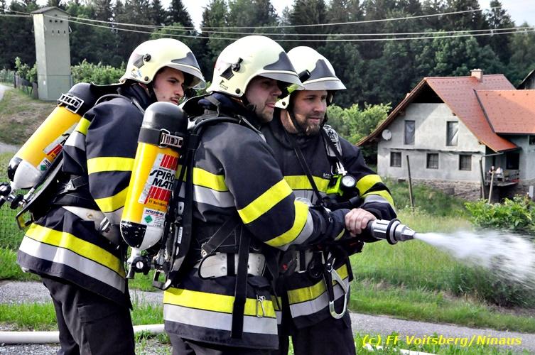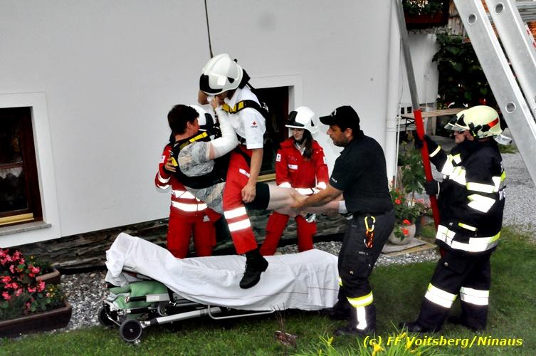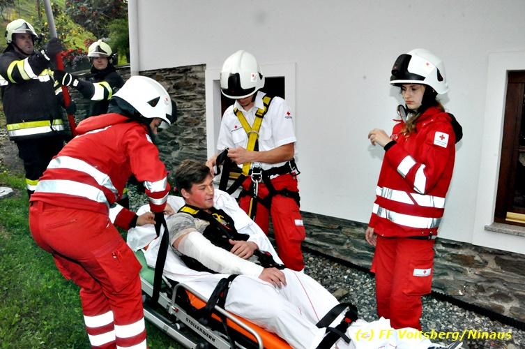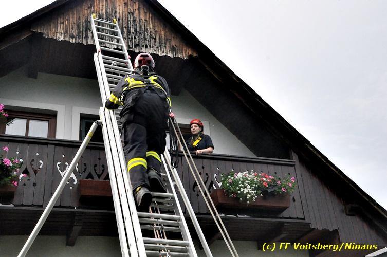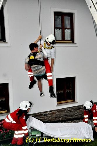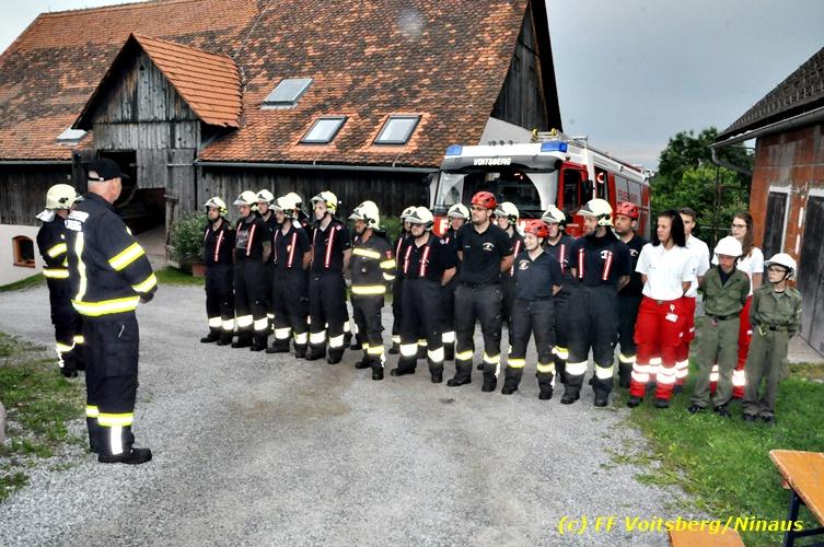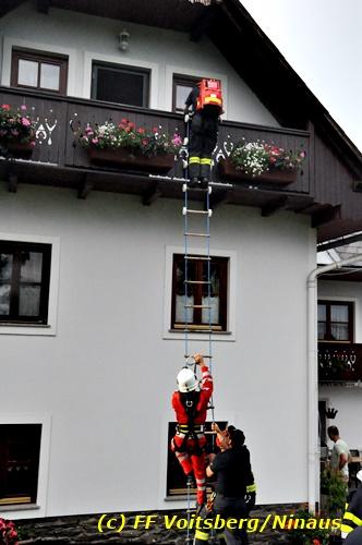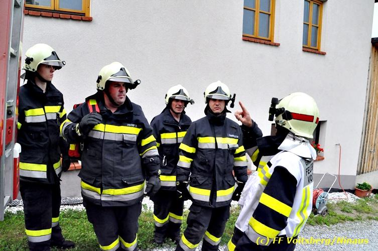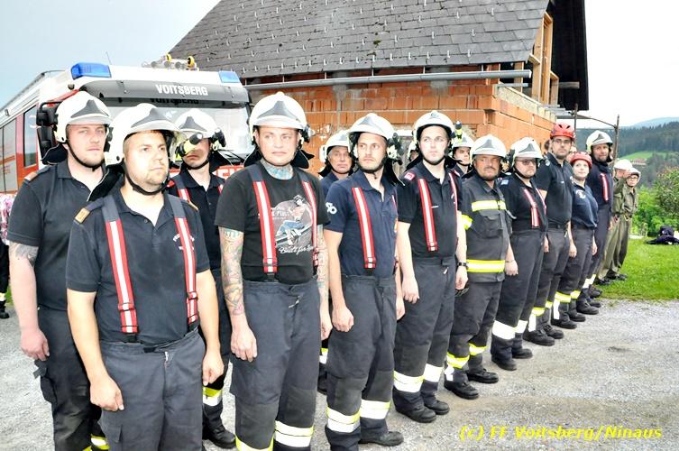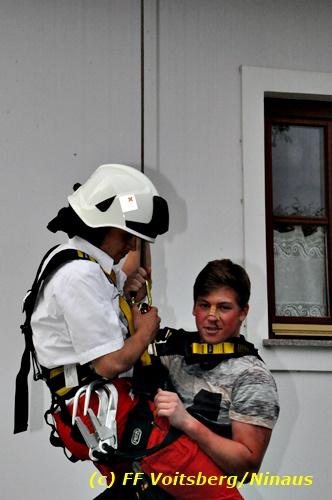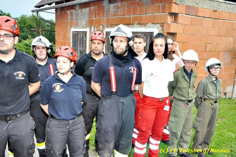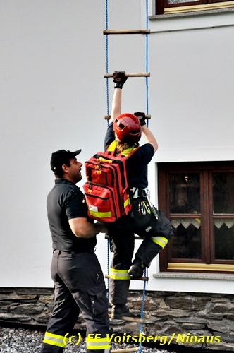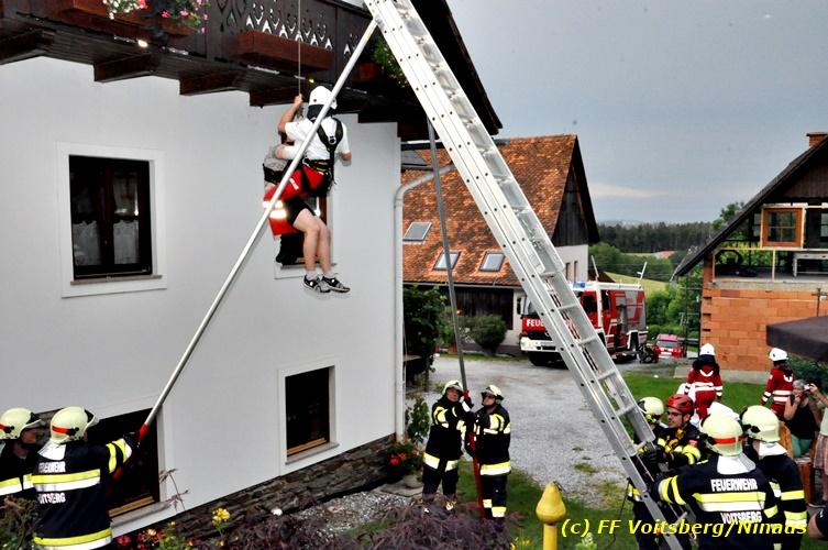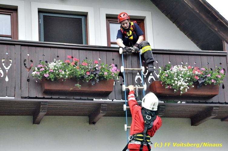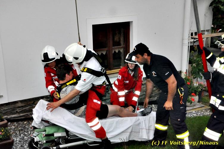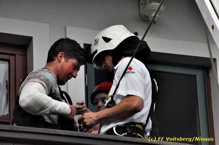 VOITSBERG, am 04.06.2018 Die FF Voitsberg führte am Montag, dem 4. Juni 2018 eine Einsatzübung beim Anwesen Schlosser vulgo Weingartbauer am Riemerweg in Voitsberg durch. Die erste Gruppe hatte mit dem B-Rohr einen Holzstapelbrand und anschließend einen Brand mit Menschenrettung unter schwerem Atemschutz im Wirtschaftsgebäude zu bekämpfen. Gruppe zwei hatte die Aufgabe, eine auf einem Balkon verletzte Person durch Abseilen zu retten, wobei für die Erstversorgung eine zum Haus gehörende Strickleiter in Verwendung genommen werden konnte. Eine ausgebildete MRAS-Helferin und ein ausgebildeter Sanitäter des Roten Kreuzes führten in Zusammenarbeit mit dem Bodenpersonal die erfolgreiche Rettung durch und konnten den Verletzten dem Roten Kreuz übergeben. Bei der Schlussbesprechung dankte BR Klaus Gehr für die gezeigte Einsatzbereitschaft und bedankte sich beim Roten Kreuz für die Teilnahme. Einen besonderen Dank sprach der Wehrkommandant für die Bereitstellung des Übungsgeländes der Familie Schlosser aus und überreichte Frau Schlosser einen Blumenstrauß. Herr Willibald Schlosser zollte für die gezeigte Leistung Respekt und lud abschließend zu Speis`und Trank, wofür sich die KameradInnen bedanken möchten. Fotos und Text: Walter Ninaus/FF Voitsberg