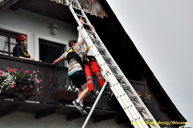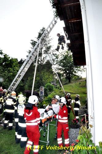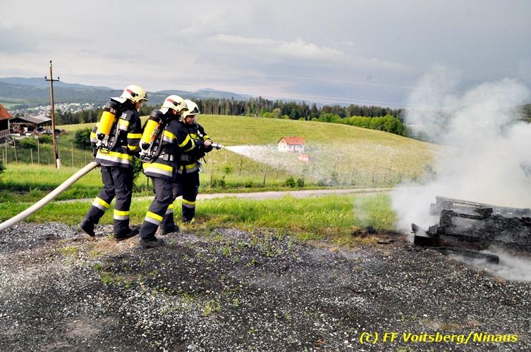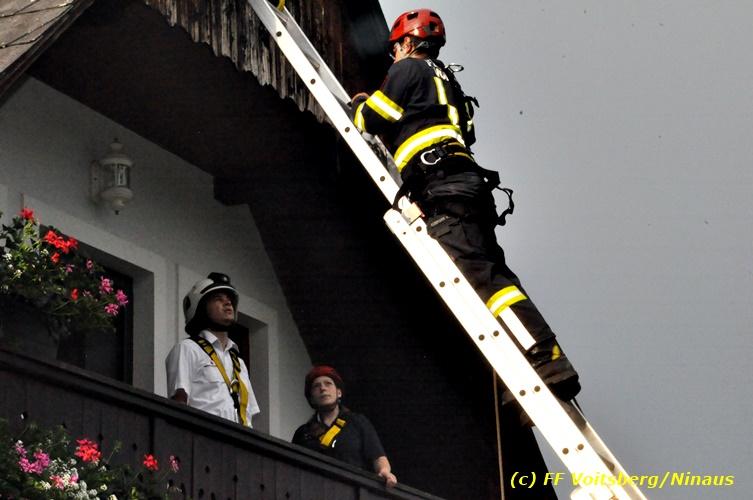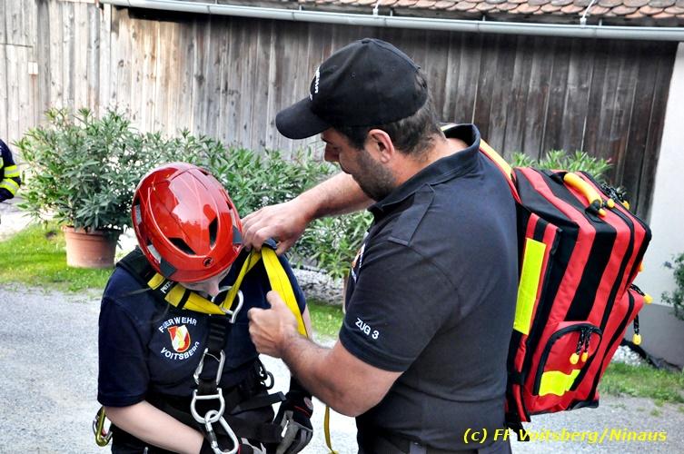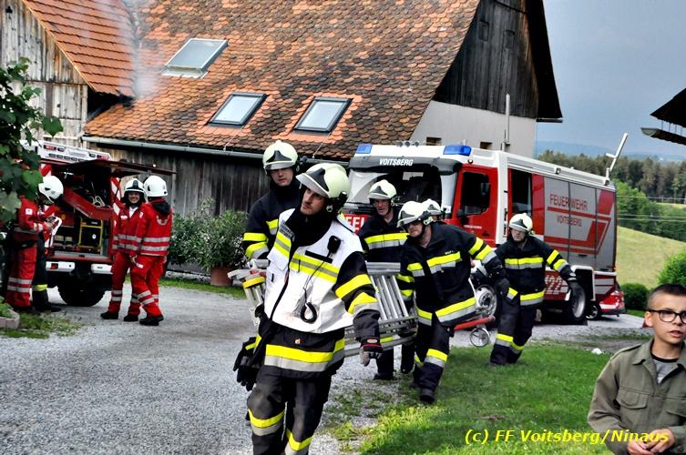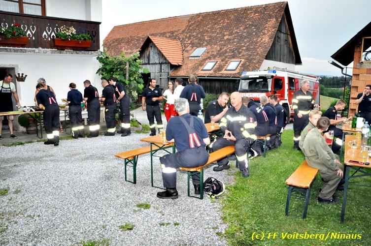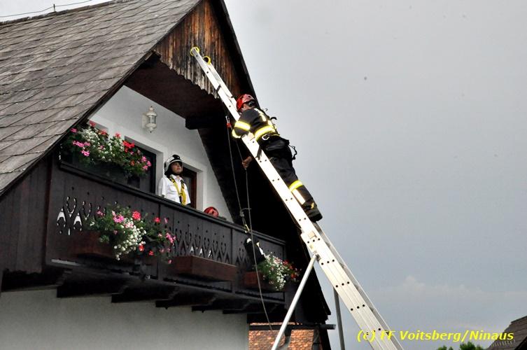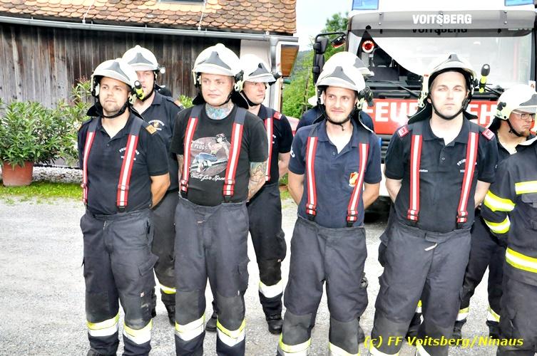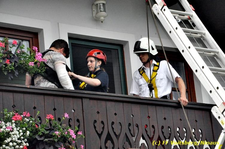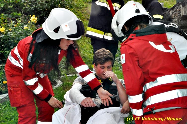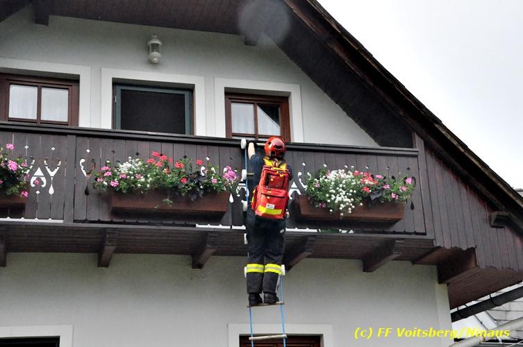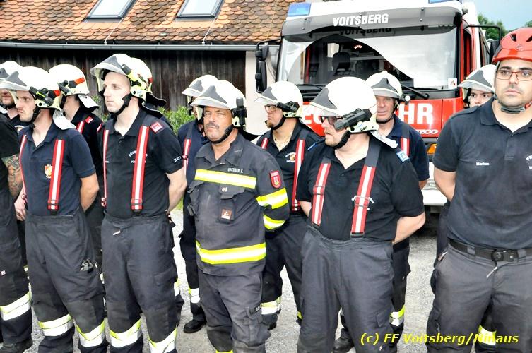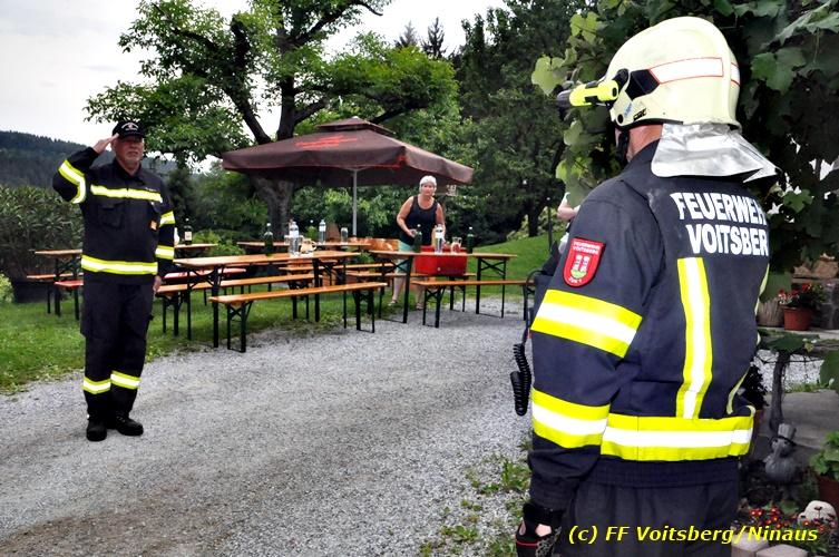 VOITSBERG, am 04.06.2018 Die FF Voitsberg führte am Montag, dem 4. Juni 2018 eine Einsatzübung beim Anwesen Schlosser vulgo Weingartbauer am Riemerweg in Voitsberg durch. Die erste Gruppe hatte mit dem B-Rohr einen Holzstapelbrand und anschließend einen Brand mit Menschenrettung unter schwerem Atemschutz im Wirtschaftsgebäude zu bekämpfen. Gruppe zwei hatte die Aufgabe, eine auf einem Balkon verletzte Person durch Abseilen zu retten, wobei für die Erstversorgung eine zum Haus gehörende Strickleiter in Verwendung genommen werden konnte. Eine ausgebildete MRAS-Helferin und ein ausgebildeter Sanitäter des Roten Kreuzes führten in Zusammenarbeit mit dem Bodenpersonal die erfolgreiche Rettung durch und konnten den Verletzten dem Roten Kreuz übergeben. Bei der Schlussbesprechung dankte BR Klaus Gehr für die gezeigte Einsatzbereitschaft und bedankte sich beim Roten Kreuz für die Teilnahme. Einen besonderen Dank sprach der Wehrkommandant für die Bereitstellung des Übungsgeländes der Familie Schlosser aus und überreichte Frau Schlosser einen Blumenstrauß. Herr Willibald Schlosser zollte für die gezeigte Leistung Respekt und lud abschließend zu Speis`und Trank, wofür sich die KameradInnen bedanken möchten. Fotos und Text: Walter Ninaus/FF Voitsberg