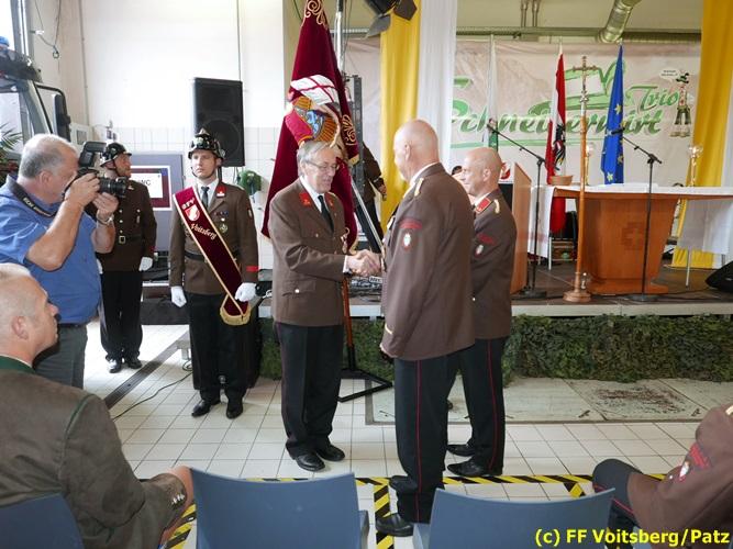 VOITSBERG, am 26.08.2018 Das jährliche Zweitagefest der FF Voitsberg stand witterungsbedingt unter keinem guten Stern. Anhaltender Regen an beiden Veranstaltungstagen ließen die Wehrmitglieder hoffen, dass die Bevölkerung der FF Voitsberg durch den Besuch der Veranstaltung einen positiven Ausgang ermöglichen würde. Positiv überrascht war man dann bereits am Samstag, als die „Granaten“ mit ihrer Granatenstimmung die Fahrzeughalle, welche bis auf den letzten Platz gefüllt war, in ein Tollhaus an Stimmung verwandelte. Vor Beginn des Sommerfestes fand die Siegerehrung des Stocksportturnieres durch Bürgermeister Ernst Meixner, BerFwKdt OBR Christian Leitgeb und Wehrkommandant BR Ing. Klaus Gehr statt. Als Sieger gingen aus diesem Turnier, welches aufgrund der Wetterlage in der Stocksporthalle des ESV Zangtal stattfand, die „4 Pensionisten“ vor dem Team „Kuni“ und der FF Kainach hervor. Diesbezüglich gilt der Familie Veigl für die Vorbereitung und Organisation Dank auszusprechen. Besonderer Dank dem ESV Zangtal für die Bereitstellung der Anlage. Am Sonntag fand in der Fahrzeughalle ein Gottesdienst, zelebriert von unserem Wehrmitglied Generalvikar Dr. Erich Linhardt statt. Im Anschluss erfolgte die Übergabe des von der Stadtgemeinde Voitsberg angekauften SF2000 (Schlauchfahrzeug 2000 m) durch Bürgermeister Ernst Meixner an den Wehrkommandanten BR Ing. Klaus Gehr und anschließender Segnung durch den Generalvikar Dr. Linhardt. Musikalisch umrahmt wurde diese Feier von einem Bläserensemble der Werkskapelle Bauer. Vor sehr vielen Festgästen fand anschließend ein zünftiger Frühschoppen wie gewohnt bei bester Stimmung bis in die Nachmittagsstunden mit dem allseits beliebten Schneiderwirt-Trio statt. Die Kameradinnen und Kameraden der Stadtfeuerwehr Voitsberg möchten sich auf diesem Wege bei allen Spendern aus der Wirtschaft, der Presse für die Vorberichterstattung, der Bevölkerung für die große Unterstützung und im speziellen bei den vielen Besuchern recht herzlich bedanken. Ein großer Dank dem Reisebüro „Gruber-Reisen“ für die großzügigen Spenden. Fotos: Patz, Ninaus, Wolf – alle FF Voitsberg Text: Walter Ninaus, FF Voitsberg
