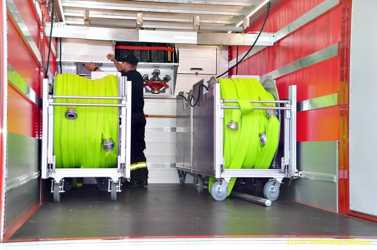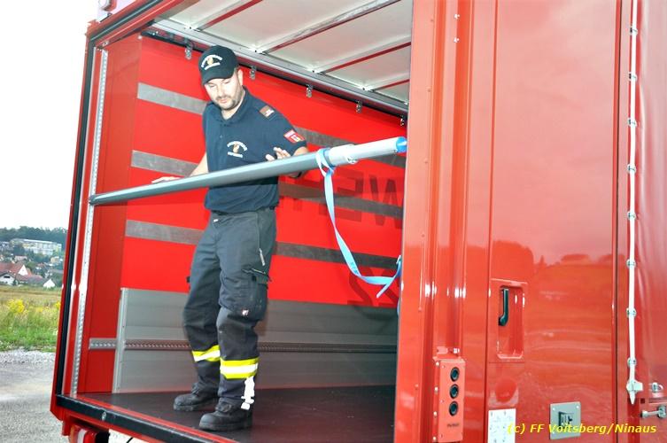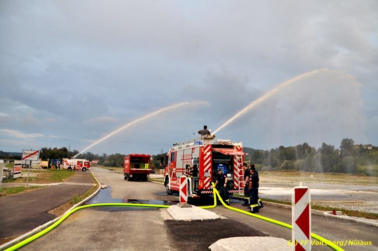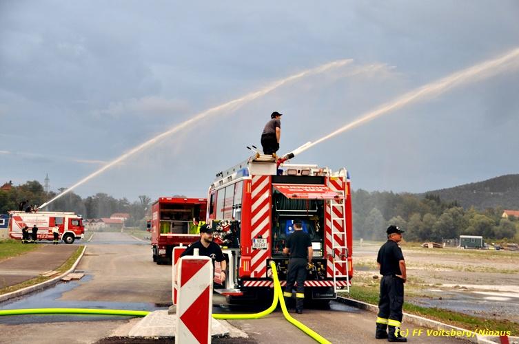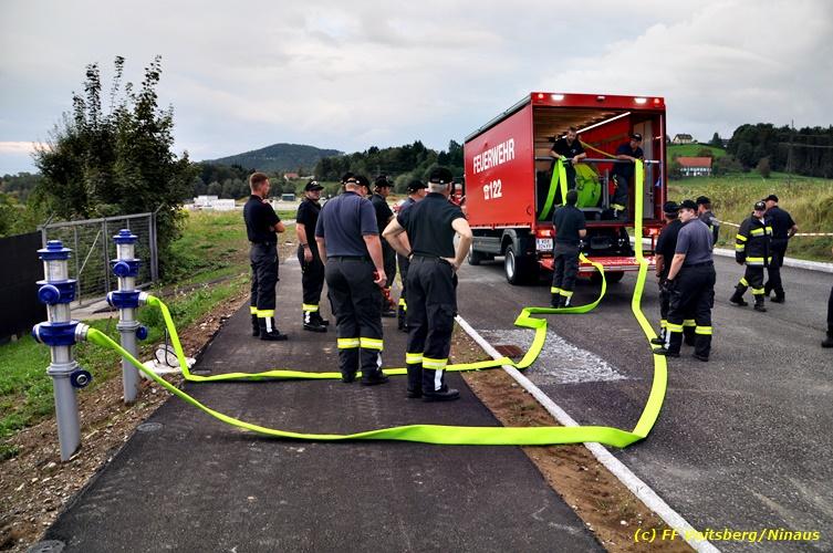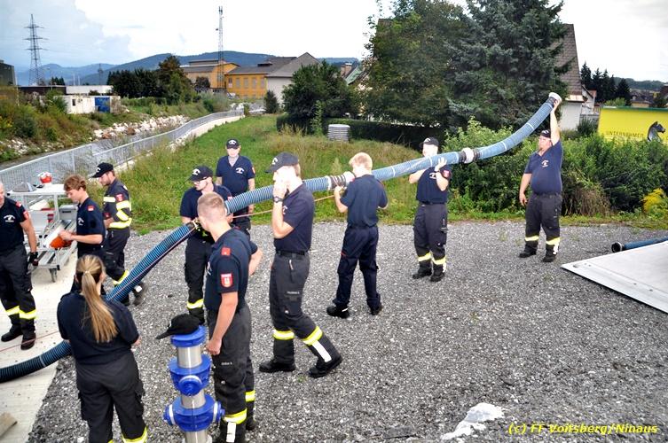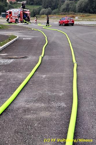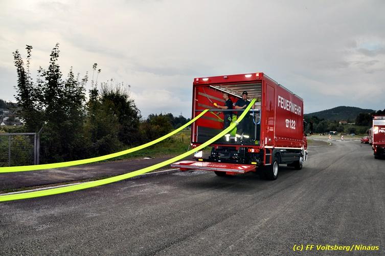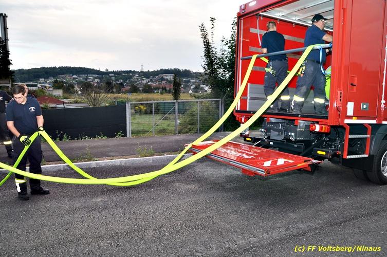 VOITSBERG, am 03.09.2018 Im Rahmen der regelmäßigen Übungen und Schulungen fand am Montag, 3. September 2018 im sogenannten ÖDK-Gelände eine erste Übung mit dem neuen Schlauchfahrzeug statt. Binnen kurzer Zeit wurden damit 200 m B-Druckschläuche zur Erprobung des Systems ausgelegt. Gleichzeitig wurde mit einer Tragkraftspritze Wasser aus der Kainach von den vorgesehenen Pumpstellen in das nach Forderung der Feuerwehr installierte Rohrsystem, welches unterirdisch in das ÖDK-Gelände führt, gepumpt. Aus Hydranten wurde sodann die verlegte Löschleitung mit Wasser versorgt und zu den Tanklöschfahrzeugen transportiert, sodass mit zwei Wasserwerfern in Tätigkeit getreten werden konnte. Nach ersten Erkenntnissen kann man berichten, dass dieser seitens der Stadtgemeinde Voitsberg erfolgte Ankauf dieses Fahrzeuges, welches in dieser Form steiermarkweit als Prototyp bezeichnet werden kann, als zukunftsweisend bezeichnet werden kann. Text und Fotos: Walter Ninaus, FF Voitsberg