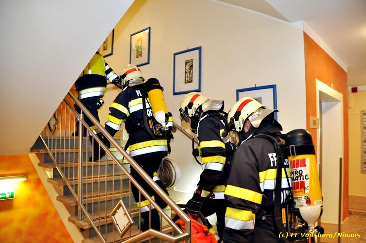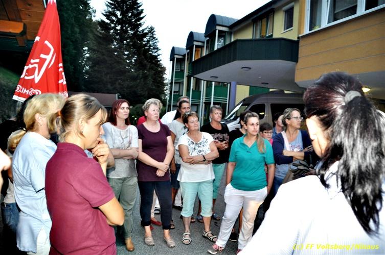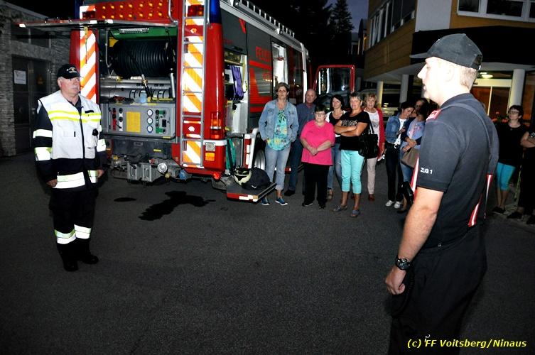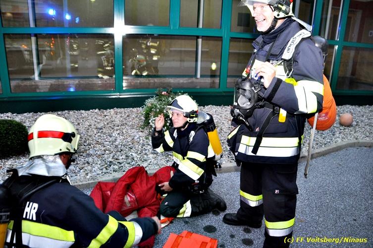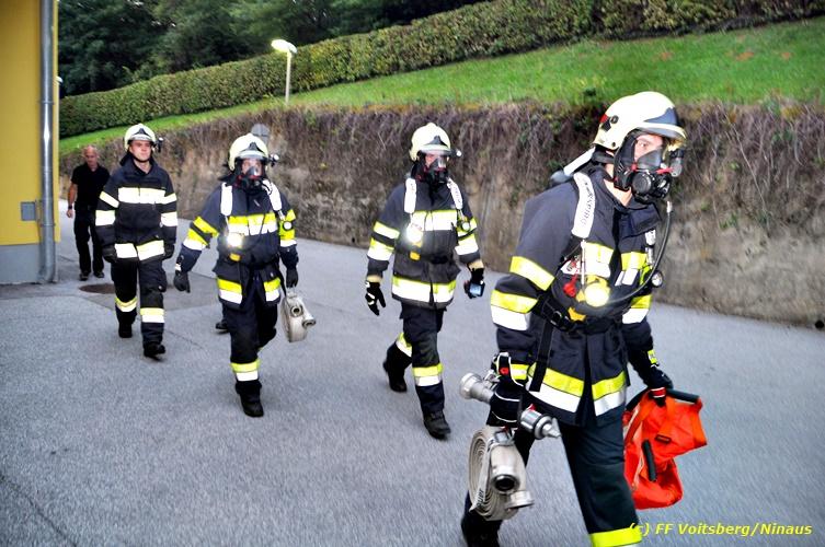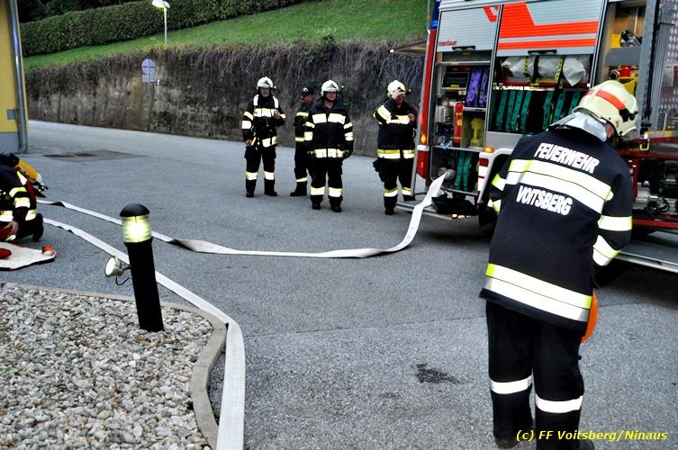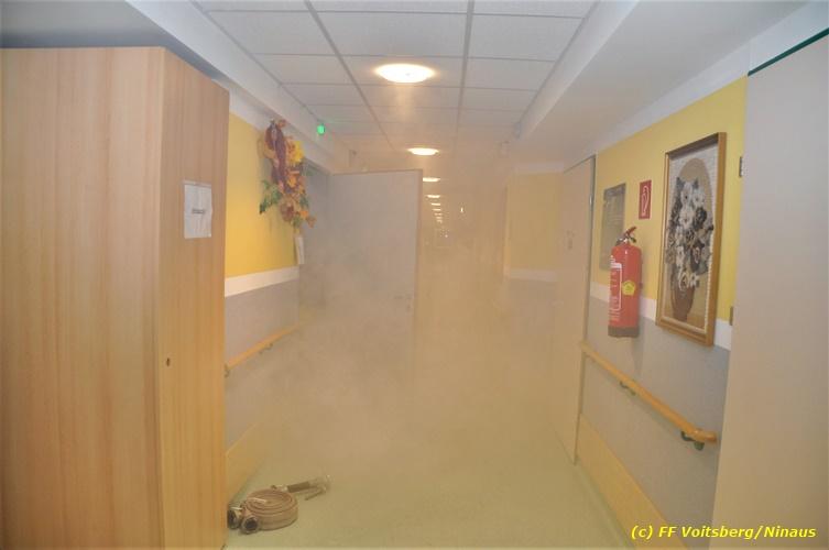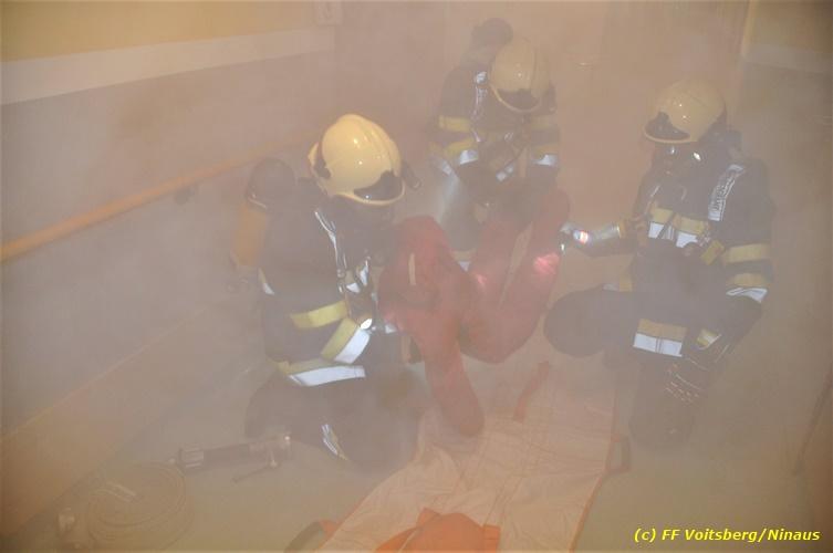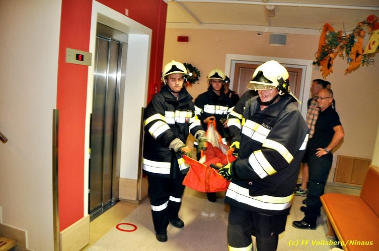 VOITSBERG, am 17.09.2018 Im Rahmen der regelmäßigen Übungen hielt die FF Voitsberg am Montag, 17. September 2018 eine Einsatzübung im Bezirksaltenheim am Voitsberger Schlossberg ab. Übungsannahme war ein Brand in einem Zimmer im zweiten Obergeschoß, in welchem eine betagte Person vermisst wurde. Nach Eintreffen am Übungsort wurde Einsatzleiter BM Rene Sorger von einem Bediensteten empfangen und über die Einsatzlage informiert. Die bereits bei der Anfahrt mit schwerem Atemschutz ausgerüstete Mannschaft des HLF 3 führte mit einem Atemschutztrupp einen Innenangriff durch und konnte aus dem stark verrauchten Raum eine Person retten und zur ärztlichen Versorgung ins Freie bringen. Die Mannschaft des HLF 4 versorgte die Steigleitung mit Löschwasser und stellte einen Atemschutz-Reservetrupp. Nach der erfolgreich abgeschlossenen Übung fand am Vorplatz eine Übungsnachbesprechung statt. Daran nahm fast das gesamte Personal der Pflegeanstalt teil und wurde von BI Karlheinz Buchegger und Übungsleiter OLMdF Christian Buchegger über die Chronologie nach der Alarmierung durch die Brandmeldeanlage und der Ausrüstung der Feuerwehrmannschaft informiert. Abschließend wurden die Einsatzkräfte der FF Voitsberg zu Speis und Trank in den Speisesaal eingeladen. Text und Fotos: Walter Ninaus/FF Voitsberg