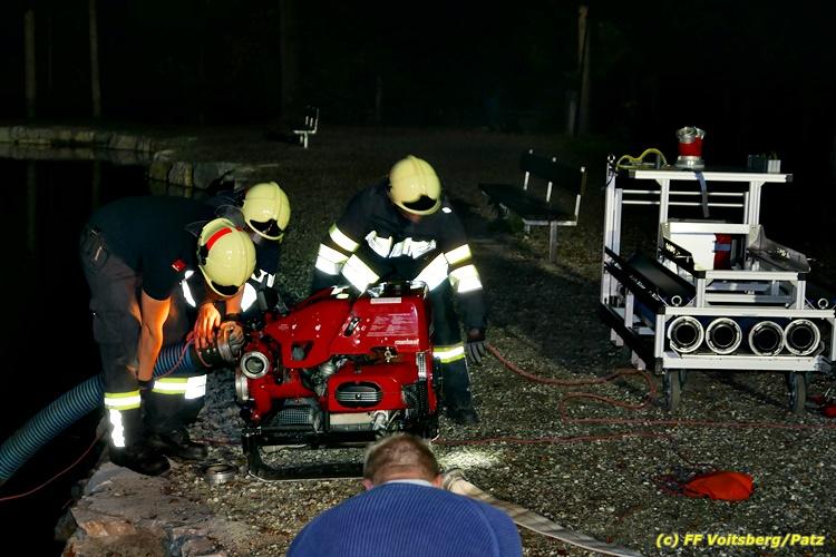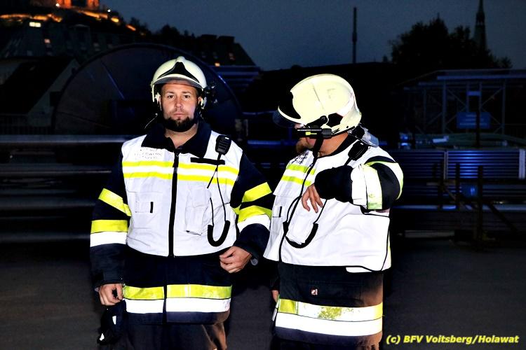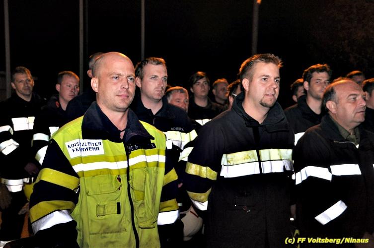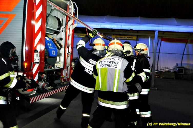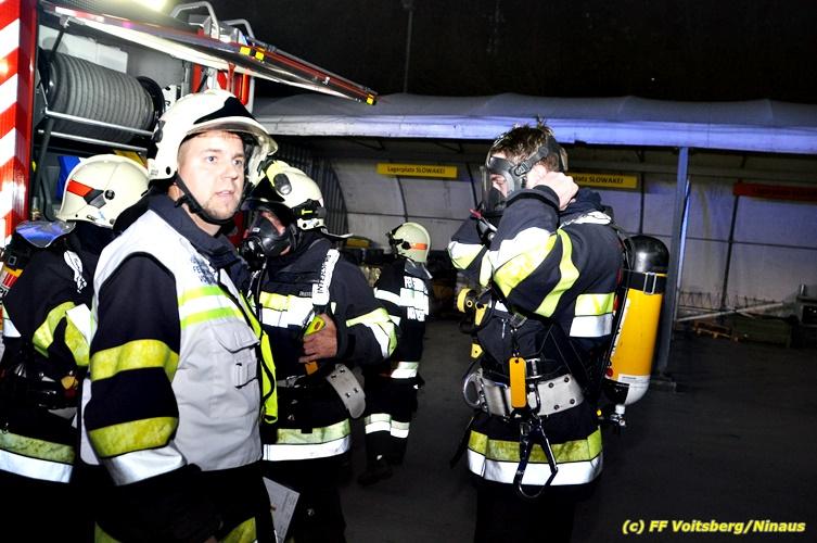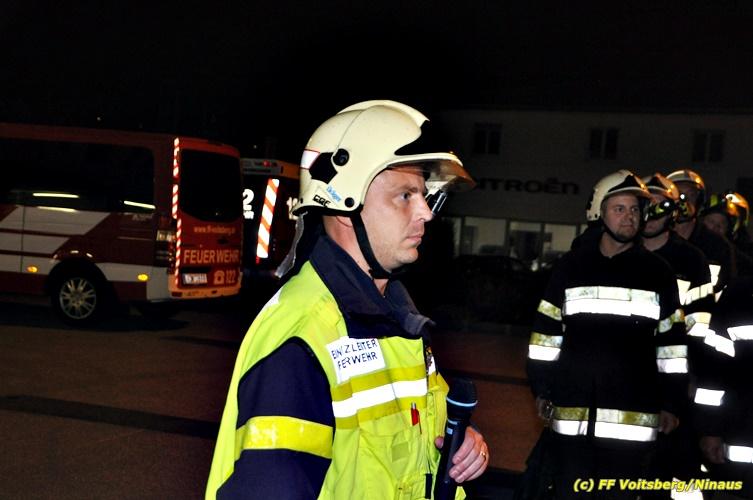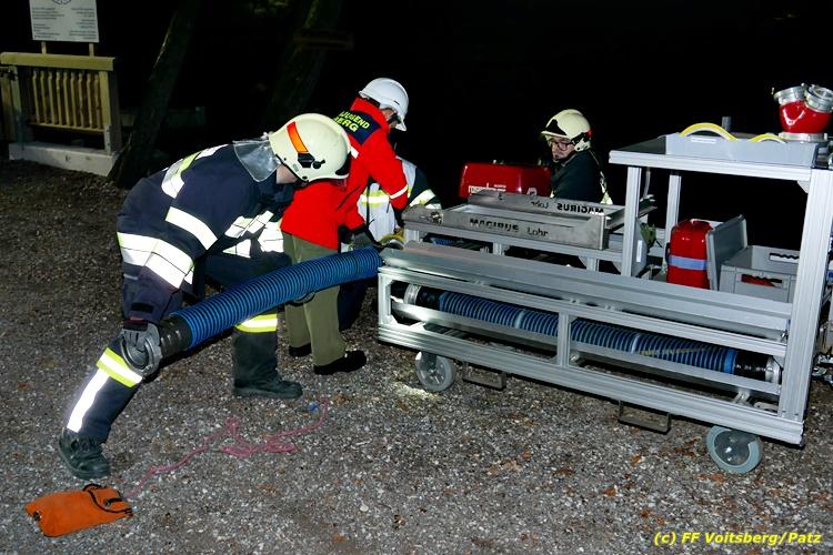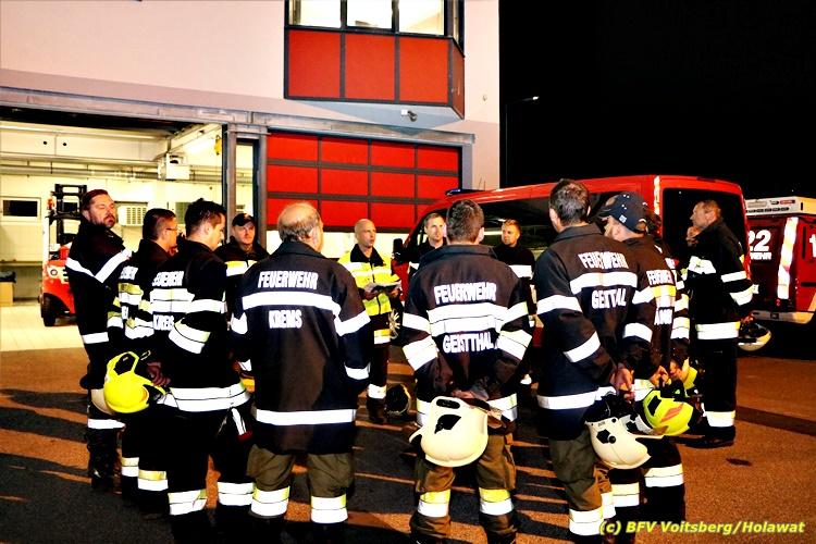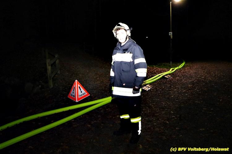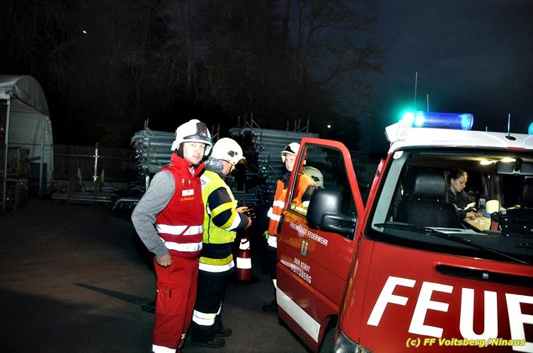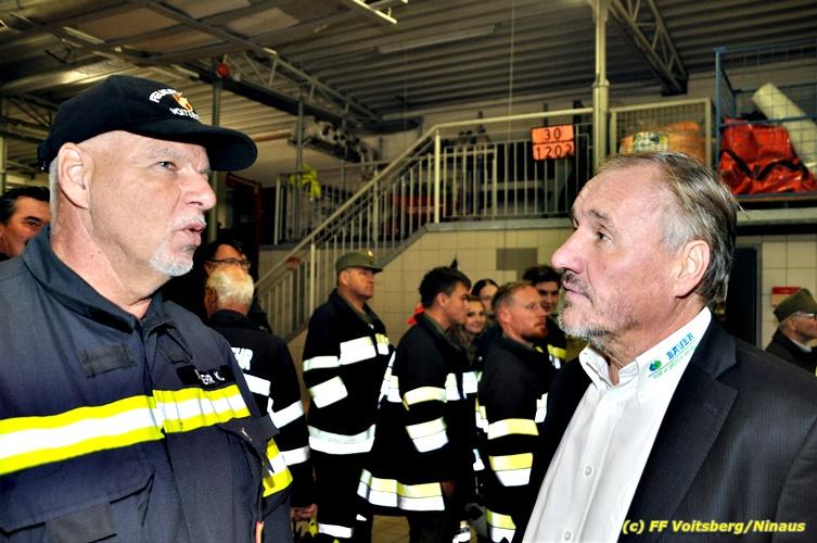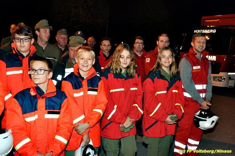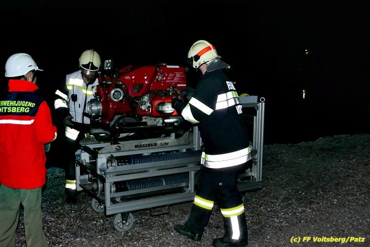 Der Feuerwehrabschnitt 2 des BFV Voitsberg veranstaltete am Montag, 15. Oktober 2018 bei der Firma Bauer in Voitsberg eine Abschnittsübung. Der Wehrkommandant der durchführenden Feuerwehr Voitsberg, BR Ing. Klaus Gehr konnte vor der Übung zahlreiche Übungsbeobachter bei der Übungserklärung begrüßen: Bürgermeister Ernst Meixner, Vizebürgermeister Walter Gaich, Stadtrat Franz Sachernegg, GR Werner Blumauer, GR Horst Kovacic, GR Johann Rauchegger, vom Roten Kreuz Voitsberg-Köflach BezirksrettungskdtStv. Florian Angerer und Elisabeth Jauk, das Team von Kanal3 und im speziellen die Vertreter der Firma Bauer mit ihrem Chef Otto Roiss. Gegen 18.30 Uhr wurde die Freiwillige Feuerwehr der Stadt Voitsberg über einen Brand bei der Firma Pumpen Bauer alarmiert, dass ein Teil einer Halle bereits in Vollbrand stehe und 5 Personen in den Hallen noch eingeschlossen seien bzw. die Halle nicht mehr verlassen konnten. Einsatzleiter OBI DI (FH) Bernd Unger alarmierte über Florian Voitsberg sofort die Feuerwehren des Abschnittes 2 sowie die Drehleiter der FF Köflach. Die Feuerwehr Voitsberg hat nach Eintreffen am Einsatzort sofort mit 2 Tanklöschfahrzeugen und HD-Rohr eine Erstbrandbekämpfung begonnen und ein Atemschutztrupp hat die Suche und das Retten von den vermissten Personen begonnen. Eine weitere Mannschaft hat eine Zubringleitung für den Wasserbezog vom zwei Kilometer entfernten Grafenteich zu errichten begonnen. Zwei Tragkraftspritzen haben die Wasserförderung über zwei B-Leitungen übernommen. Die nach der Reihe eintreffenden Wehren wurden vom Einsatzleiter Unger Bernd über das derzeitige Ausmaß informiert und sie erhielten jeweils ihre Einsatzbefehle. Vordergründig war natürlich die Suche und Rettung der weiteren vermissten Personen. Die Drehleiter Köflach mit dem Wasserwerfer hat den Brandherd aus 30 Meter Höhe bekämpft. Weiters wurden weitere 3 Wasserwerfer zur Brandbekämpfung eingesetzt. Die Wehren des Abschnittes 2 (Krems, Bärnbach, Afling Geistthal, Kainach, Stallhofen und Södingberg) wurden für weitere Löschangriffe der Halle wie auch zum Schützen der angebauten und angrenzenden Hallen beauftragt. Bei der Schlusskundgebung und nach der Meldung an Abschnittskommandanten ABI Alfred Jauk teilte BR Gehr, Kommandant der FF Voitsberg (durchführende Wehr der Abschnittsübung) mit, dass die Maxime der Übung die Bekämpfung eines Industriebrandes sowie die Wasserförderung in großen Mengen gewesen sei. Unter den Ehrengästen konnte ABI Alfred Jauk den Betriebsleiter der Firma Bauer Herrn Otto Roiss, Bereichskommandantstellvertreter BR Ing. Klaus Gehr, für alle Mitglieder des Bereichsfeuerwehrausschusses ABI d.V. Günter Höller, EBR Robert Klampfl, EABI Rudolf Gargitter, das Rote Kreuz unter Bezirksrettungskommandantstellvertreter Florian Angerer und den Brandschutzbeauftragten HBM Herbert Gratzer begrüßen. Zugleich wurde mitgeteilt, dass 147 Mann, 4 Wasserwerfer, die Drehleiter Köflach sowie 3 Atemschutztrupps und alle weiteren zur Verfügung stehenden Einsatzfahrzeuge des Abschnittes 2 eingesetzt waren. Nach dem Antreten wurde mit den zuständigen Gruppenkommandanten eine Nachbesprechung der Übung abgehalten, um etwaige Fehler oder Verbesserungen aufzeigen zu können. Anschließend wurde alle Übungsteilnehmer seitens der Firma Pumpen Bauer zur Verpflegung ins Rüsthaus Voitsberg eingeladen. Text: Artur Holawat, BFV Voitsberg Fotos: Artur Holawat/BFV Voitsberg, Walter Ninaus/FF Voitsberg, Franz Patz/FF Voitsberg