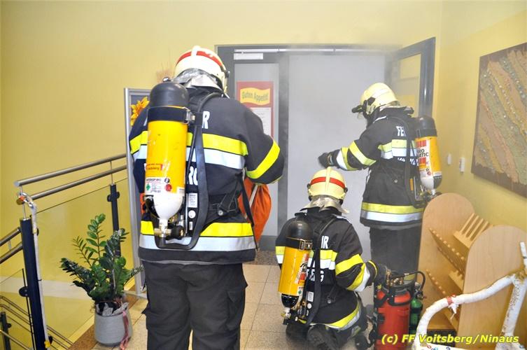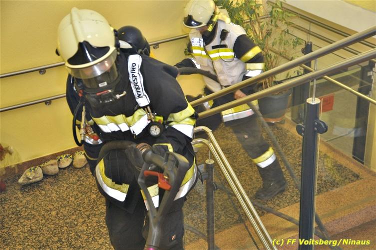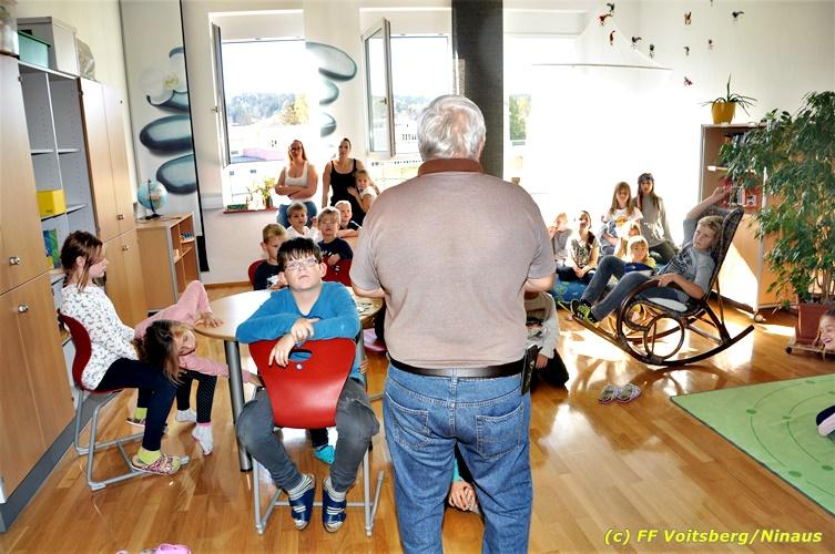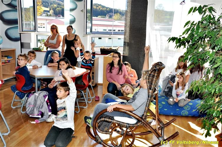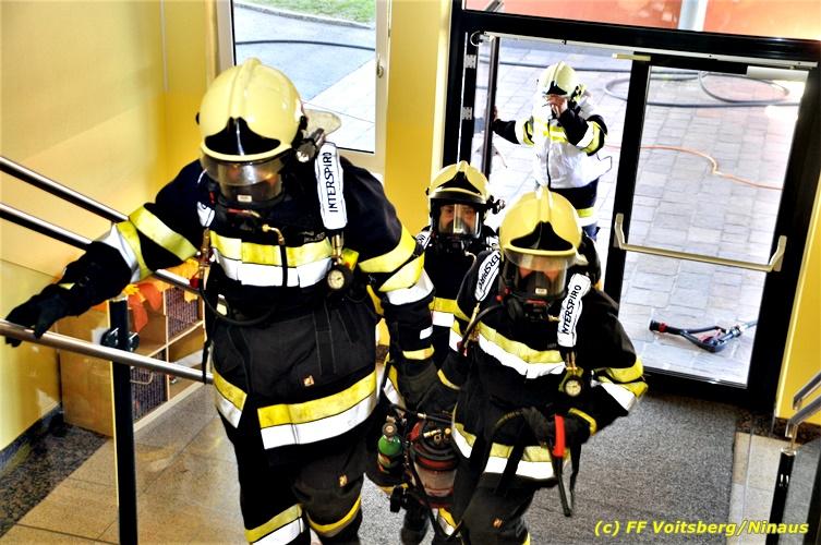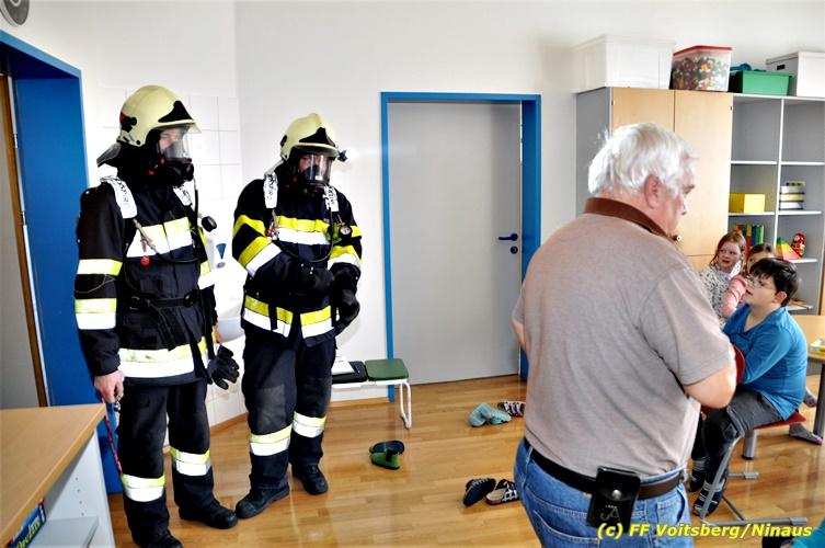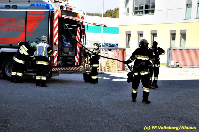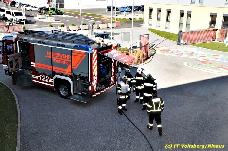 VOITSBERG, am 24.10.2018 Im Kinderhort Voitsberg in der Helmut-Glaser-Strasse fand am Mittwoch, 24. Oktober 2018 eine Räumungsübung statt. Übungsannahme war ein Brand in der Küche im ersten Stock. Nach dem internen Alarm begaben sich die Schüler und die Aufsichtspersonen auf einen im Alarmfall vorgesehenen Sammelplatz. Die verständigte FF Voitsberg führte nach der Erkundung einen Innenangriff unter schwerem Atemschutz mit einem Trupp durch und löschte das Feuer. Der vorhandene Rauchabzug im gesamten Objekt konnte sodann mit Unterstützung eines Drucklüfters die Räumlichkeiten rauchfrei machen, sodass die Schüler ihre Klassenzimmer wieder beziehen konnten. Davor wurde den Kindern von ABI Jauk das richtige Verhalten bei einem Brandereignis gezeigt, wobei die Jugendlichen aktiv mitarbeiten konnten. Bei einer abschließenden Nachbetrachtung der Übung mit BR Ing. Klaus Gehr, ABI Alfred Jauk, Einsatzleiter Harald Kremaucz und Verantwortlichen des Horts wurden der Ablauf als auch Verbesserungen erläutert. Text und Fotos: Walter Ninaus, FF Voitsberg