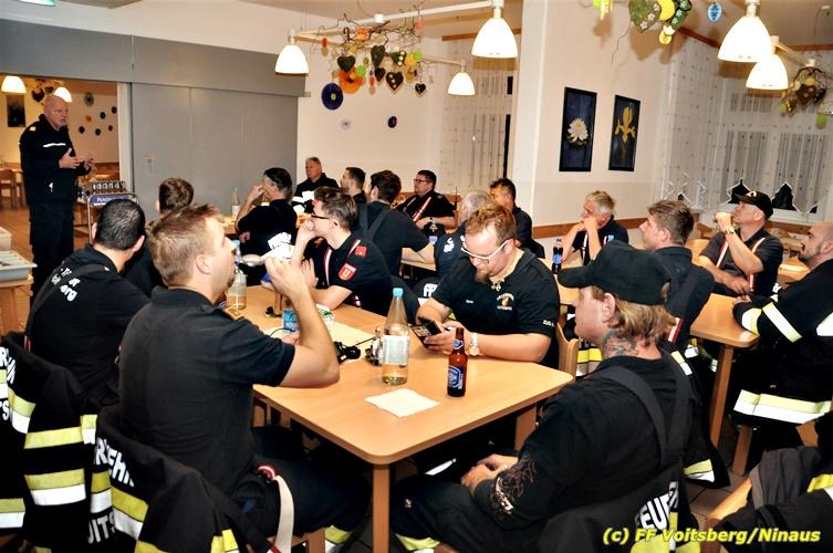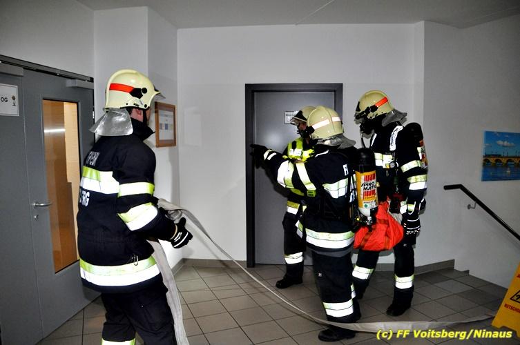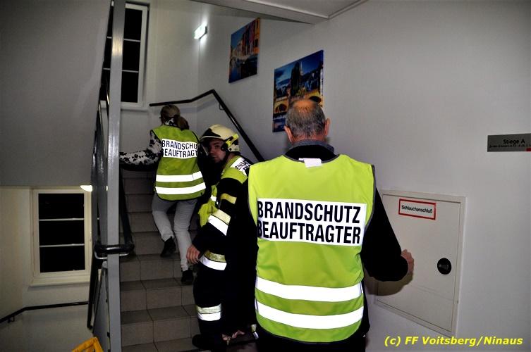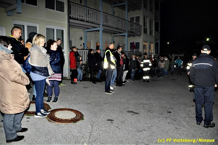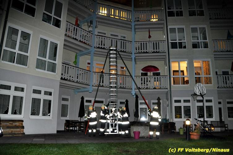 VOITSBERG, am 12.11.2018 Die FF Voitsberg führte am Montag, 12. November 2018 im Margarethenhof in Voitsberg eine Einsatzübung durch. Übungsannahme war ein Zimmerbrand im 1. OG, wobei sich eine Person im verqualmten Raum befand. Nach der Einweisung des Brandschutzwartes an die Einsatzkräfte und der Erkundung durch den Einsatzleiter BI d. F. Harald Kremaucz begab sich ein Trupp mit schwerem Atemschutz und einem C-Rohr über das Stiegenhaus in das betroffene Zimmer. In Kürze konnte der Brand gelöscht, die vermisste Person gefunden und aus dem Gefahrenbereich gebracht werden. Ein zweiter Angriff erfolgte über die dreiteilige Schiebeleiter über den Balkon. Nach abgeschlossener Übung meldete der Übungsleiter OLM Christian Buchegger an den Wehrkommandanten BR Ing. Klaus Gehr das Ende. BR Gehr bedankte sich bei beim Pflegepersonal für die Bereitschaft der Teilnahme an dieser Übung, um im Ernstfall helfend eingreifen zu können. Des Weiteren gilt der Dank an OLM Christian Buchegger für die Vorbereitung und den Verantwortlichen des Margarethenhofes für die Einladung zu Speis und Trank. Text und Fotos: Walter Ninaus, FF Voitsberg