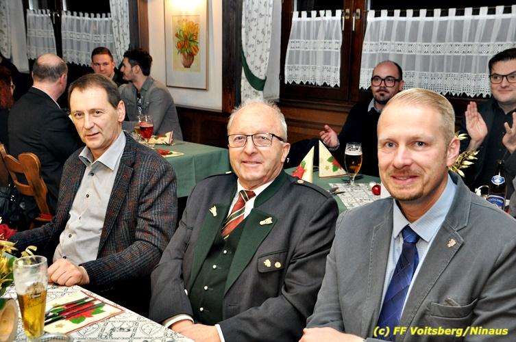 VOITSBERG, am 15.12.2018 Die Freiwillige Feuerwehr der Stadt Voitsberg veranstaltete am Samstag, 15. Dezember 2018 ihre traditionelle Weihnachtsfeier. BR Ing. Klaus Gehr konnte beim Schneiderwirt am Lobmingberg in Voitsberg neben den erschienenen Wehrmitgliedern und deren Partnerinnen einige Ehrengäste begrüßen: Stadtpfarrer Mag. Gerald Krempl, Bürgermeister Ernst Meixner, die Vizebürgermeister Kurt Christof und Walter Gaich, Stadtrat Markus Leinfellner und Franz Patz von den Amateurfunkern. Nach Worten des Dankes für die geleisteten Tätigkeiten seitens des Wehrkommandanten und des Bürgermeisters folgten besinnliche Worte zur Adventszeit vom Pfarrer. Musik zur Jahreszeit passend kam von einem Bläserensemble der Bergkapelle Hödlgrube-Zangtal. Ein gemeinsames Abendessen mit einem Tortenbuffet und einige gemütliche Stunden rundeten diese Weihnachtsfeier ab. Text: Walter Ninaus Fotos: Gehr und Ninaus