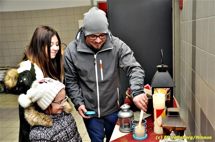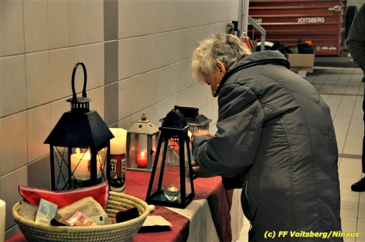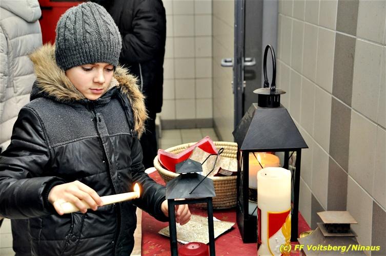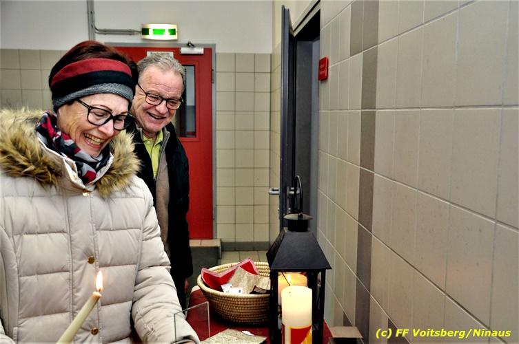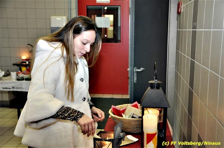 VOITSBERG, am 24.12.2018 Die Freiwillige Stadtfeuerwehr Voitsberg führte am Heiligen Abend wie in vielen Jahren zuvor auch heuer die Verteilung des Friedenslichtes aus Bethlehem, welches heuer von einem oberösterreichischen Kind dort abgeholt wurde, an die Bevölkerung und an Feuerwehrangehörige durch. Bereits in den frühen Morgenstunden kamen die Ersten um das Licht abzuholen. Im Rahmen dieser Aktion, welche von vielen Mitbürgern angenommen wurde, werden auch Brötchen, Kekse und dgl. mit vorzüglichen Getränken verabreicht. Die KameradInnen der FF Voitsberg möchte sich auf diesem Wege für die freiwilligen Spenden auf das allerherzlichste bedanken. Mit der Mitwirkung an dieser Aktion bekundet die Bevölkerung die Verbundenheit zur FF Voitsberg. Für die Vorbereitungen und die Durchführung zeichnet in altbewährter Weise die Familie Veigl verantwortlich, wofür ihnen Dank auszusprechen ist. Text und Fotos: Walter Ninaus, FF Voitsberg