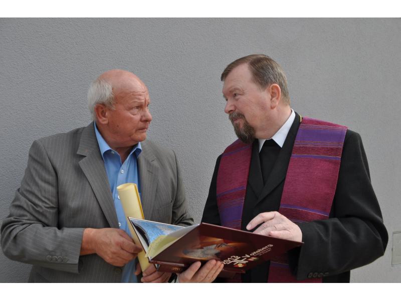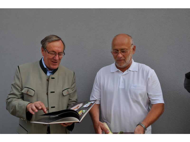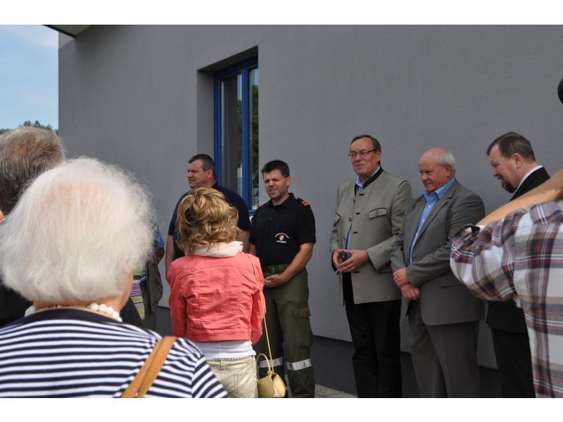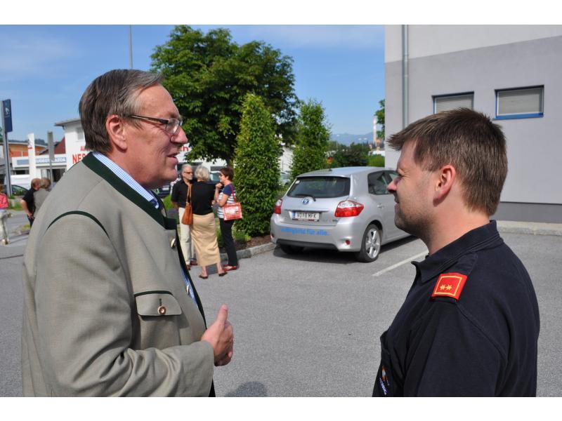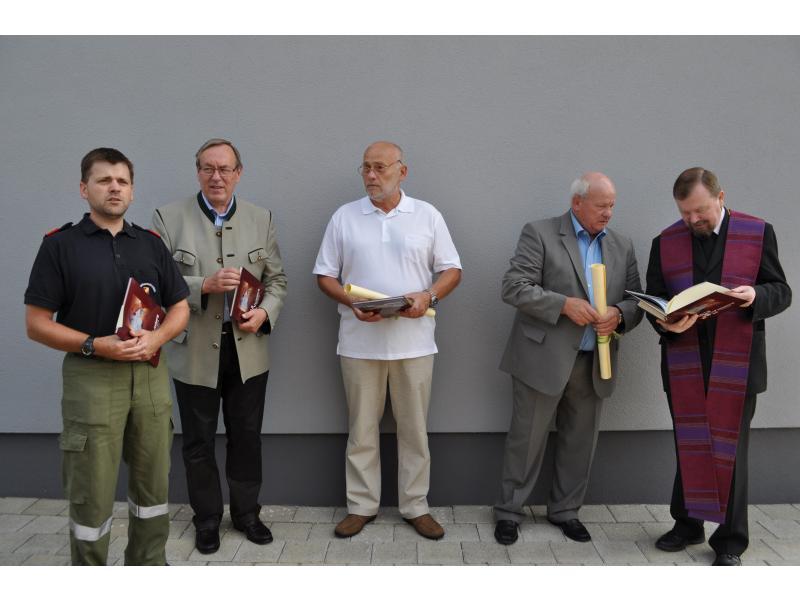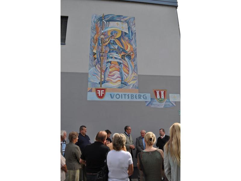 VOITSBERG, am 03.07.2013 Anlässlich der Rüsthausübergabe und –Weihe im Jahre 1997 schuf der bekannte Maler Prof. Franz Weiß auf der Südseite des Rüsthauses der FF Voitsberg eine Wandmalerei, bei welcher der Schutzpatron der Feuerwehren, der heilige Florian, in einer wunderschönen Malerei, dargestellt ist. Das Kunstwerk hat in den letzten 16 Jahren an Wirkung verloren und so entschloss sich die Stadtgemeinde Voitsberg mit Bürgermeister Ernst Meixner an der Spitze eine Restaurierung durchführen zu lassen. Da es Herrn Prof. Franz Weiß aus gesundheitlichen Gründen nicht möglich war, die Arbeiten durchzuführen, wurde der bekannte und geschätzte weststeirische Bildhauer und Maler Alois Rieger beauftragt, den Urzustand des Kunstwerkes wieder herzustellen. Nach wochenlangen Arbeiten konnte der Auftrag abgeschlossen und offiziell die Übergabe durch den Künstler an die Stadtgemeinde Voitsberg mit Bürgermeister Ernst Meixner und an die Stadtfeuerwehr mit Oberbrandinspektor Michael Münzer vollzogen werden. Grußworte des Bürgermeisters, des Oberbrandinspektors, des Malers und die abschließende Segnung durch den Bereichsfeuerwehrkuraten Dechant Dr. Erich Linhardt rundete diese kleine Feierstunde ab. Anschließend wurde alle Anwesende zu einem Umtrunk ins Rüsthaus der FF Voitsberg geladen.