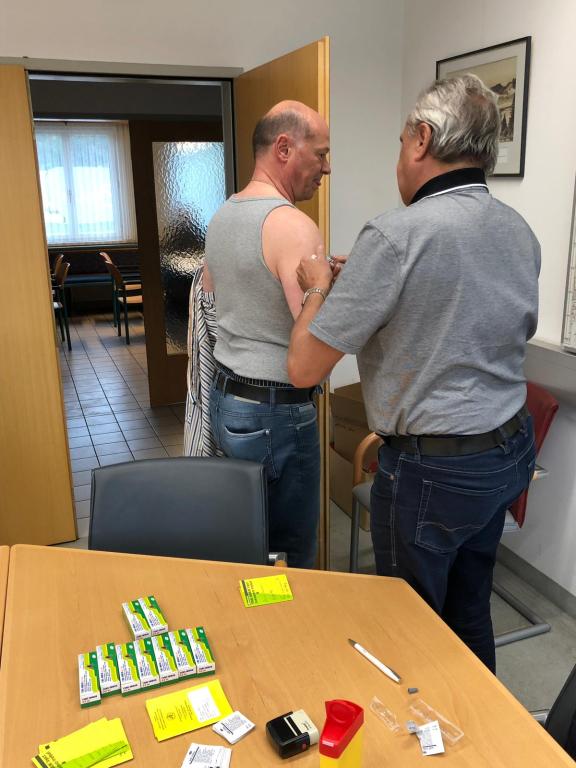 VOITSBERG, am 29.04.2019 Alljährlich organisiert die FF Voitsberg für die Mitglieder eine Zeckenschutzimpfung. Federführend in der Organisation zeichnete der Sanitätsbeauftragte Christoph Amberger. Die Impfung führte dankeswerterweise Feuerwehrarzt Dr. Leo Nebel durch.