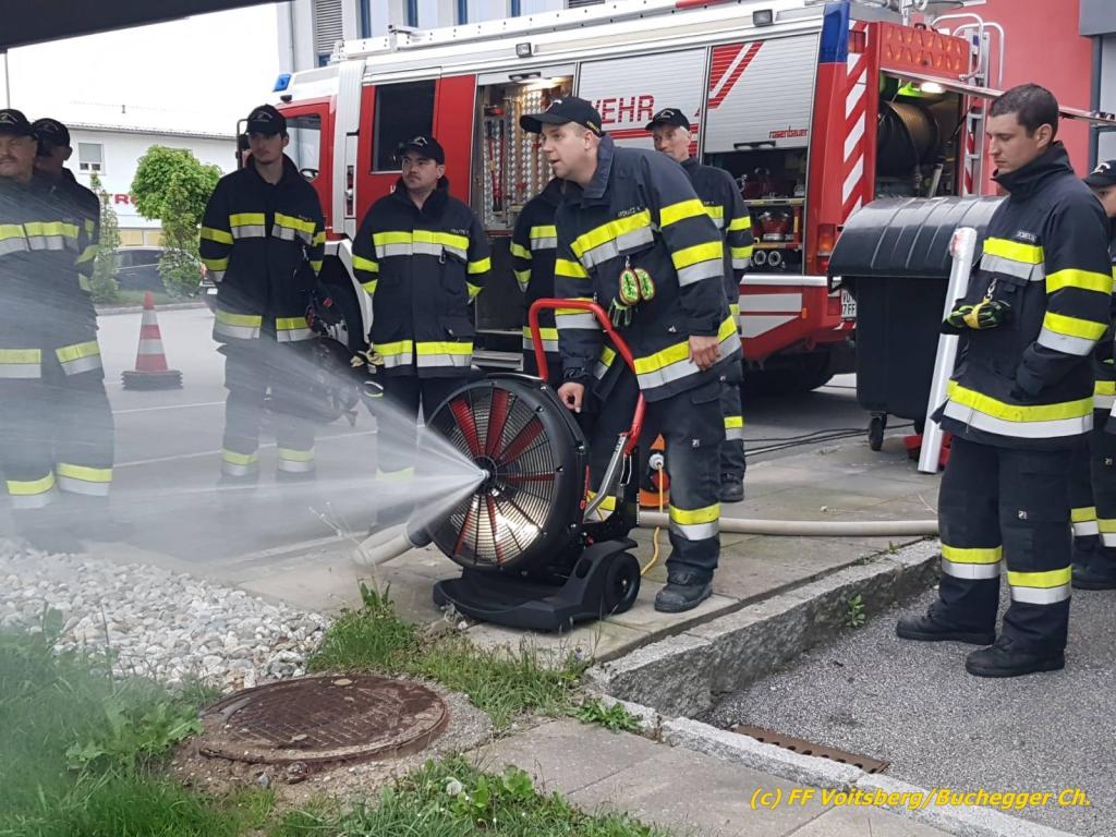 VOITSBERG, am 29.04.2019 Die FF Voitsberg führte im Zuge ihrer Montagsübung eine Schulung mit dem Themenschwerpunkt Taktische Ventilation durch. BIdF Harald Kremaucz zeigte die Problemstellungen bei Zimmer- und Kellerbränden auf und stellte anschließend die Einsatztaktik vor. Im Anschluss wurde die richtige Belüftung eines verrauchten Kellers praktisch beübt. Ebenfalls kam der kürzlich neu angeschaffte Elektrodruckbelüfter erstmalig zum Einsatz. Dieses Gerät verfügt auch über die Funktion eines Leichtschaumgenerators, mit welchem vor allem Kellerbrände effektiv bekämpft werden können. Text und Fotos: Christian Buchegger/FF Voitsberg