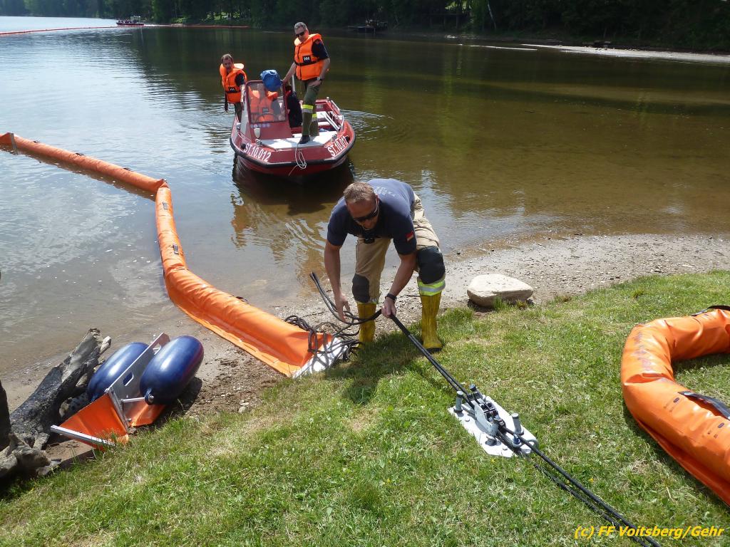 VOITSBERG, am 08.06.2019 Am Samstag, 8. Juni 2019 fand am Packer Stausee eine Schulung zur richtigen Handhabung von Ölsperren auf ruhigem Gewässer statt. Organisiert von den Beauftragten des BFV Voitsberg BIdF Philipp Krenn (FF Ligist) und BIdF Harald Kremaucz (FF Voitsberg) wurden in Zusammenarbeit mit dem Stützpunkt für Gefahrgut (FF Voitsberg) und Wasserdienst (FF Stallhofen) sowie der BtF Sappi Gratkorn die Techniken geschult. Weiters unterstützt wurde diese Schulung seitens der BF Graz durch die Bereitstellung von Mannschaft und Gerätschaften. Als Beobachter fungierten seitens des BFV Voitsberg BerFwKdt OBR Christian Leitgeb, BerFwKdtStv. BR Ing. Klaus Gehr sowie die Abschnittsfeuerwehrkommandanten ABI Alfred Jauk, ABI Harald Nestler und ABI Markus Murgg. Text: Walter Ninaus, FF Voitsberg Fotos: Klaus Gehr, FF Voitsberg