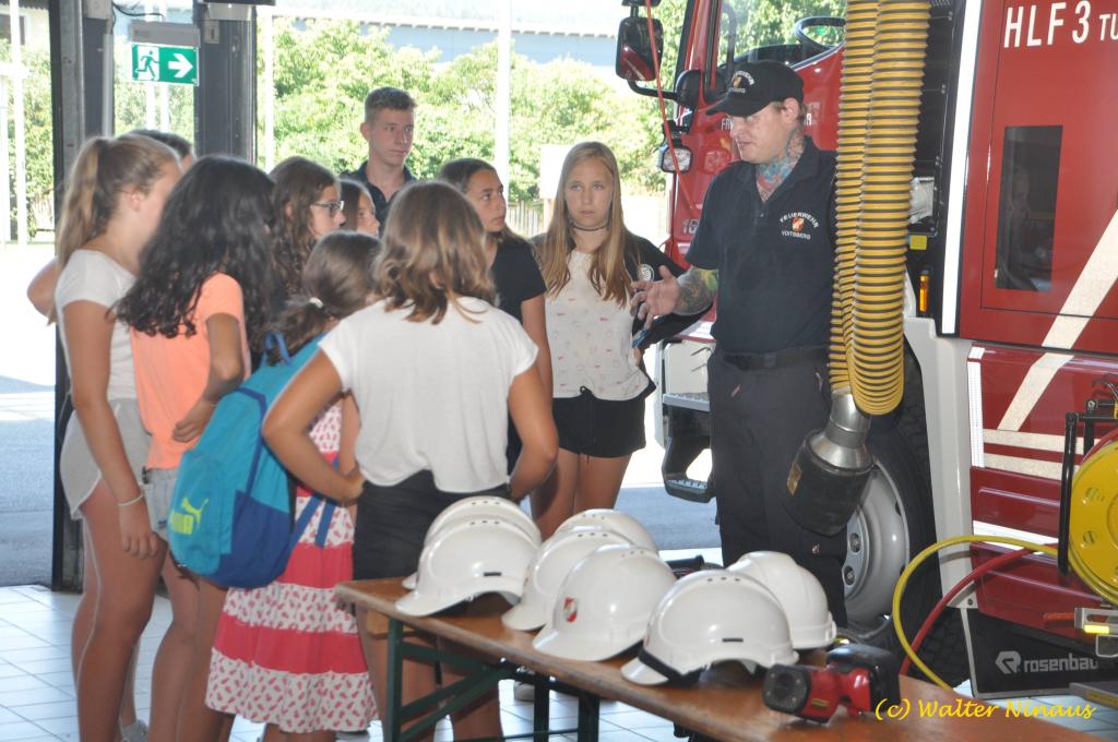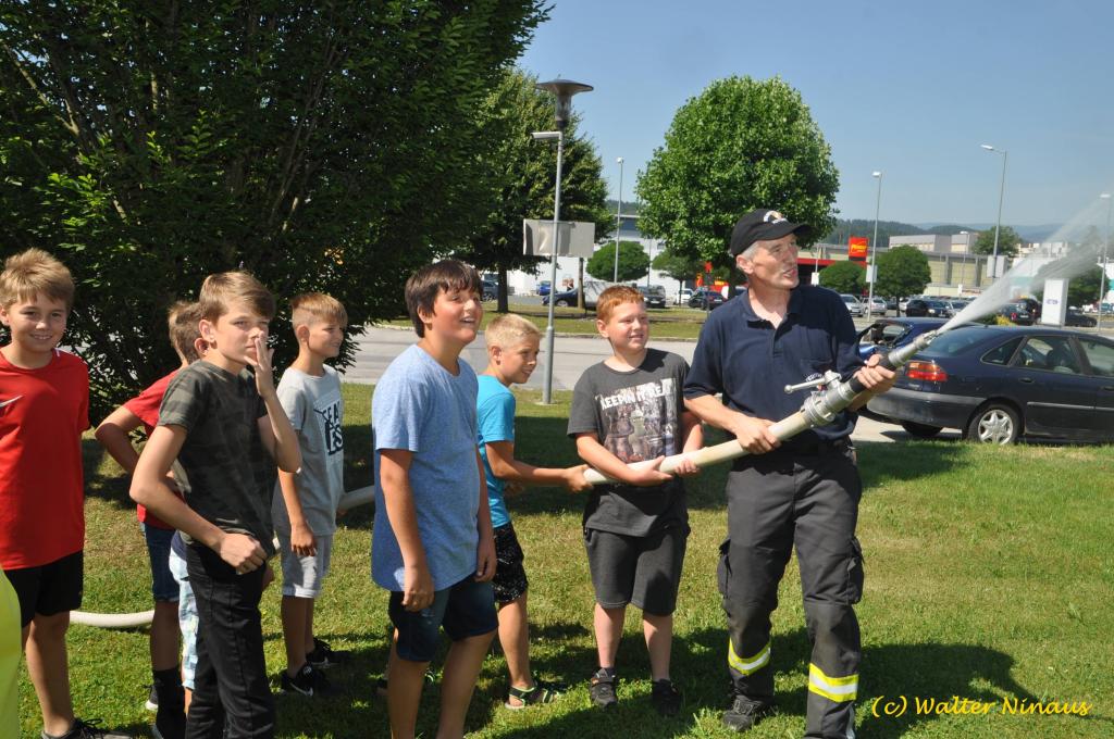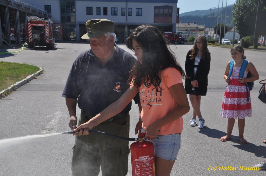 VOITSBERG, am 01.07.2019 Neue Mittelschule Voitsberg besuchte die Feuerwehr Voitsberg Zwei Klassen der NMS Voitsberg besuchten am 1. Juli 2019 die Feuerwehr Voitsberg. Begrüßt wurden die SchülerInnen mit ihrer Lehrerin/Lehrer vom Jugendbeauftragten Daniel Traußnigg. Die Jugendlichen folgten mit großem Interesse den Vorträgen und Aktionen der Wehrmitglieder. Ob beim Rundgang durch das Rüsthaus, den richtigen Handhabungen mit Feuerlöschern, den praktischen Übungen mit Schere und Spreizer, dem Anlegen eines Atemschutzgerätes, die SchülerInnen stellten an die KameradInnen Fragen und erhielten die Antworten. Besonders gut angekommen bei diesen schweißtreibenden Temperaturen wurde die kalte Dusche mit einem Strahlrohr bei Sprühstrahl. Nach Ende der Vorführungen wurden alle auf ein kühles Getränk und Obst eingeladen. Sollten Jugendliche, aber auch Erwachsene beiden Geschlechtes Interesse haben, der Feuerwehr beizutreten, so sind diese innerhalb der Feuerwehr gerne gesehen.