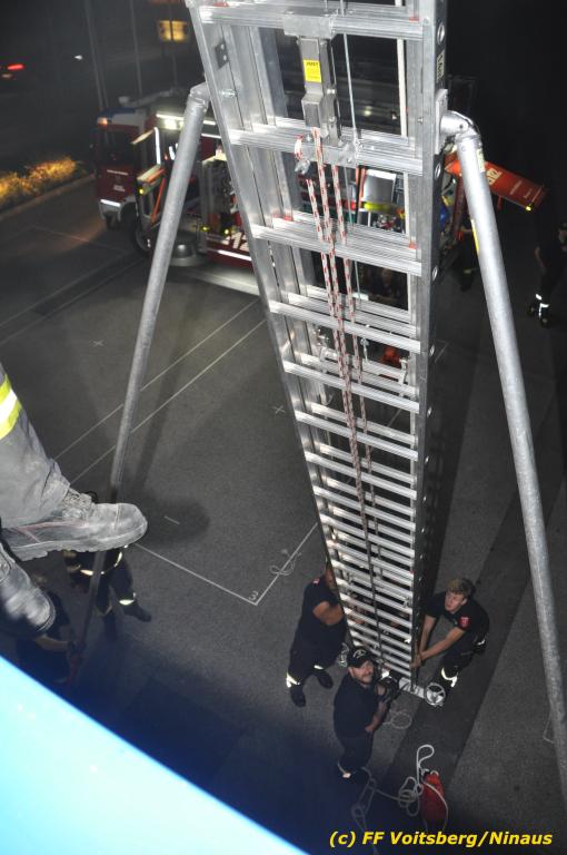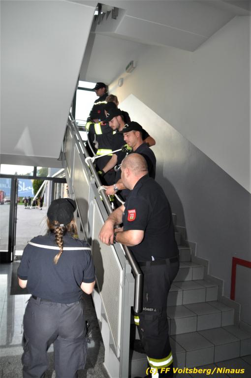 VOITSBERG, am 30.09.2019 Die Rettung von Personen mittels Rettungsgeschirr aus einem Obergeschoss stand am Programm der technischen Übung.