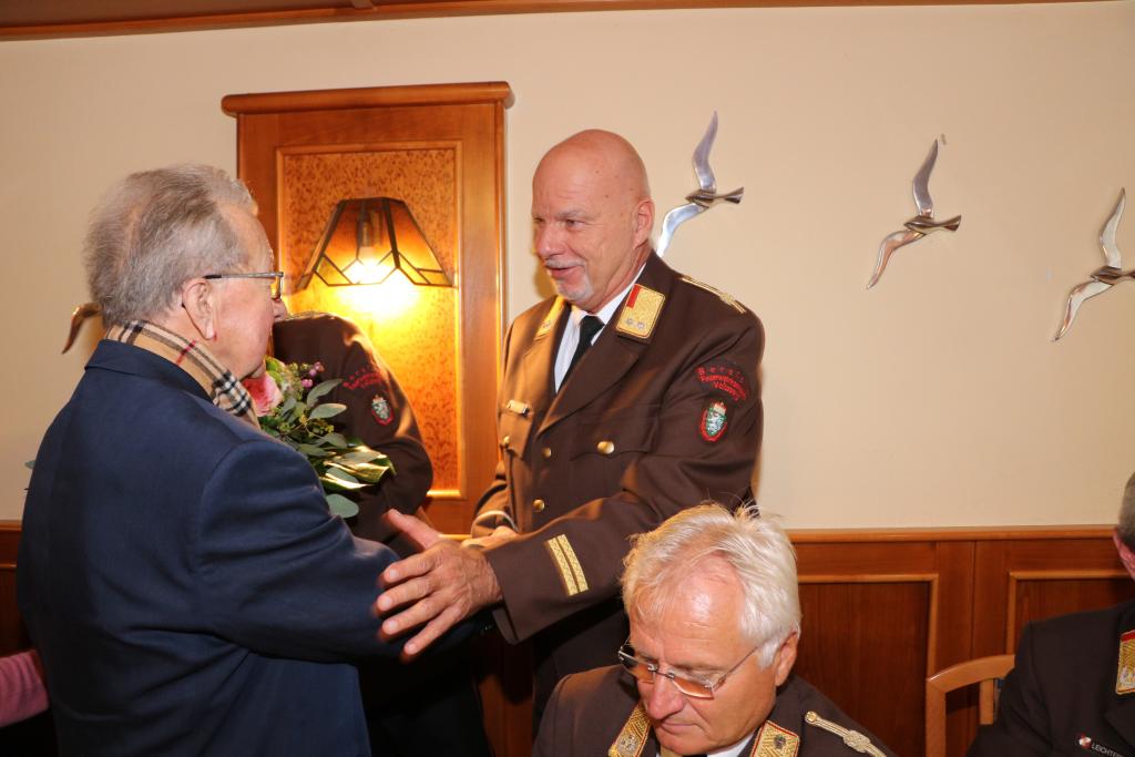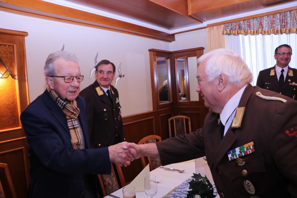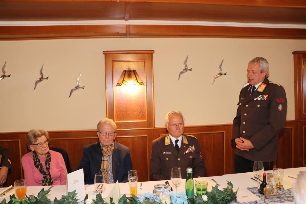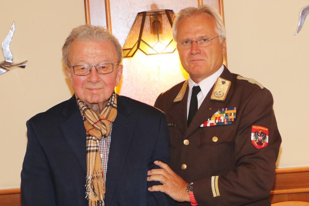Die steirische Feuerwehrlegende Karl Strablegg feierte seiner 90er Am 4. Oktober 2019 feierte der ehemalige Landesfeuerwehrkommandant und Vizepräsident des ÖBFV, ELBD Karl Strablegg, die Vollendung seines 90. Lebensjahres. Aus diesem Anlass luden der Bereichsfeuerwehrverband Voitsberg sowie die Freiwillige Feuerwehr der Stadt Voitsberg am Montag, dem 7. Oktober 2019, zu einer Geburtstagsfeier in den Gasthof Merta ein. OBR Christian Leitgeb konnte neben dem Jubilar und seiner Gattin Franziska auch FPräs. Albert Kern, LBD Reinhard Leichtfried, LBDS Erwin Grangl, ELBD Georg Ferstl, ELBD Bernhard Krugfahrt, ELBDS Gustav Scherz, Ehren-Bereichsfeuerwehrkommandant Bgm. Engelbert Huber, BR Ing. Klaus Gehr, OBR d. LFV Michael Jost sowie zahlreiche Funktionäre und Ehrendienstgrade des Bereichsfeuerwehrausschusses und der Stadtfeuerwehr Voitsberg begrüßen. BR d.V. Rudolf Lobnig fiel die ehrende Aufgabe als Laudator zu. Er zeichnete die imposante Feuerwehrlaufbahn des Jubilars, als Kommandant der FF Voitsberg, als Bezirks- und schließlich als Landesfeuerwehrkommandant. Eine Funktion, die Strablegg 20 Jahre, von 1976 bis 1996, erfolgreich innehatte und somit der längst dienende Landesfeuerwehrkommandant der Steiermark war. „Als Karl Strablegg im Jahre 1976 mit 45 Jahren zum Landesfeuerwehrkommandanten der Steiermark gewählt wurde, war er für die meisten Feuerwehrmitglieder ein unbeschriebenes Blatt. Vor allem war er für dieses hohe Amt unfassbar jung, denn der Altersdurchschnitt der Führungskräfte lag damals weit über dem 60. Lebensjahr“, führte Lobnig aus. „Doch der junge Landesfeuerwehrkommandant war schon vor seiner Wahl gut vernetzt. Im Gemeinderat der Stadt Voitsberg hatte er Erfahrungen in der Kommunalpolitik gesammelt und seine Freundschaft mit der Familie Koren öffnete ihm viele Türen in der Landespolitik. Als Kommandant der Stadtfeuerwehr Voitsberg und als Bezirksfeuerwehrkommandant verfügte er selbstverständlich über die nötigen Fachkenntnisse, was schon 1973 zu seiner Ernennung zum Landesfeuerwehrrat führte. Für den frisch gewählten Landesfeuerwehrkommandanten tat sich nun ein weites Betätigungsfeld auf. Vor allem war die Führungsriege – wie schon eingangs erwähnt – völlig überaltert. So initiierte Strablegg ein neues Landesfeuerwehrgesetz, das die Altersgrenze für den Aktivdienst mit 65 Jahren festsetzte und die Kommandantenprüfung für Offiziersdienstgrade zwingend vorschrieb. Damit vollzog sich fast schlagartig der notwendige Generationenwechsel und auch die Lehrgangsbesuche an der Feuerwehr- und Zivilschutzschule Steiermark, die damals zu den innovativsten Feuerwehrausbildungszentren Europas zählte, erreichten Spitzenwerte“ erläuterte Lobnig in seinen Ausführungen zum Anlass. So sollte der Ausbildungswelle nun auch eine wahre Ausrüstungsoffensive folgen. „Die Einführung der elektronischen Datenverarbeitung – bereits 1980 wurde der erste Großrechner im LFV installiert und die Verwaltung Zug um Zug modernisiert – war der erste Schritt. Ihm folgte der Aufbau des Atemschutzes und der Stützpunktfeuerwehren; der totale Ausbau der Funksirenensteuerung mit der Einrichtung der Bezirksalarmzentralen; das Tanklöschfahrzeug-, Drehleiter- und Rüstfahrzeugprogramm und die landesweite Förderung der persönlichen Schutzausrüstung. Doch die persönliche Schutzausrüstung für die Feuerwehrmitglieder war noch nicht genug: Mit der Einführung der „Feuerwehr-Kollektiv-Unfallversicherung“ wurde ein weiterer, wesentlicher Schritt zur Absicherung unserer Mitglieder unter Karl Strablegg gesetzt“, so Lobnig weiter in seiner Laudatio, der dabei auch auf die Pionierarbeit Strableggs im Bereich der Öffentlichkeitsarbeit einging. „Der Jubilar errichtete 1980 ein Pressereferat und gestaltete das „Mitteilungsblatt des steirischen Landesfeuerwehrverbandes“ in eine anerkannte Fachzeitschrift um. Das unter ihm verlegte ‚Große Steirische Feuerwehrbuch‘ gilt noch heute als Standardwerk für die Feuerwehrhistoriker und auch die Gründung des Feuerwehrmuseums Groß St. Florian ging auf seine gemeinsame Initiative mit Landtagspräsident a.D. Reinhold Purr, der im Februar 2018 im Alter von 81 Jahren verstorben ist, zurück“ führte der Laudator aus. „Was zeichnet eine gute Führungskraft aus?“ warf Laudator Lobnig in Folge fragend in den Raum, um gleich darauf die Antwort zu liefern. „Handschlagqualität – soziale Kompetenz – Team- und Kommunikationsfähigkeit – Durchsetzungskraft mit Augenmaß – Disziplin und eine gute Portion Weitblick. Diesen hat Karl Strablegg bewiesen, als er schon fast am Ende seiner 20-jährigen Funktionsperiode den Bau des Landesfeuerwehrkommandos in Lebring initiierte. Denn mit dem Umzug des Landesverbandes von Graz nach Lebring hat der Jubilar den Grundstein für die heutige Selbstverwaltung gelegt. Die Führungsqualitäten Karl Strableggs wurden auch im Bundesfeuerwehrverband erkannt, wo er zwei Perioden lang als Vizepräsident in zahlreichen nationalen und internationalen Arbeitskreisen die Anliegen der freiwilligen Feuerwehren vertrat. Ebenso griff die Wirtschaftskammer Steiermark auf seine Erfahrungen zurück, war er doch viele Jahre erfolgreich als Landesinnungsmeister tätig. Sein hohes Engagement wurde vor allem durch die Akzeptanz seiner Familie ermöglicht und ich darf mit besonderer Hochachtung seine Gattin erwähnen, die ihn in den vielen Stunden seiner Abwesenheit im Unternehmen ersetzen musste. Ihr gebührt ein besonderer Applaus!“ schloss Lobnig seine Ausführungen zum 90. Geburtstag von ELBD Karl Strablegg – mit der abschließenden Feststellung, dass „die heutige Positionierung der steirischen Feuerwehren ohne das Wirken des Jubilars mit seiner unglaubliche Ausbildungs- und Ausrüstungsoffensive undenkbar wäre und sohin dessen Handschrift auch noch in etlichen Jahrzehnten im steirischen Feuerwehrwesen erkennbar sein werde“. FPräs. Albert Kern und Landesfeuerwehrkommandant LBD Reinh