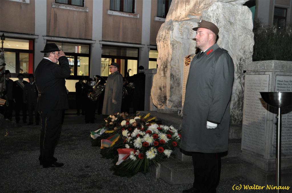 VOITSBERG, am 25.10.2019 Der Österr. Kameradschaftsbund Ortsverband Voitsberg organisierte am Vorabend des Nationalfeiertages traditionell die Totengedenkfeier zum Gedenken der gefallenen und verstorbenen Kameraden. Nach einer Gedenkmesse, zelebriert vom Seelsorger Mag. Josef Paier in der St. Josefskirche, marschierte der Zug, bestehend aus Abordnungen des Kameradschaftsbundes Voitsberg, der FF Voitsberg, der FF Krems, der Feuerwehrjugend Voitsberg, der Alt-Kainacher Ritterschaft und der Bergkapelle Hödlgrube-Zangtal zum Kriegerdenkmal in der Bahnhofstrasse. Der geschäftsführende Obmann Günter Salmutter konnte nach der Weihe der neuen Fahnenmasten durch den Geistlichen Mag. Paier zahlreiche Ehrengäste begrüßen: Bürgermeister Mag. (FH) Bernd Osprian, Vizebürgermeister Kurt Christof, Finanzstadtrat Franz Sachernegg, Gemeinderat Johann Rauchegger, Vizepräsident und Bezirksobmann Ing. Johann Harrer, EABI Rudolf Gargitter von der Feuerwehr, den Kommandanten der Polizeiinspektion Voitsberg Robert Zapfl, die Bergkapelle Hödlgrube-Zangtal sowie Personen aus der Bevölkerung, welche die Verbundenheit zum Kameradschaftsbund Voitsberg zeigen. In Ansprachen von Bgm. Bernd Osprian, BO Johann Harrer und dem Obmann Josef Ablasser wurden die Leistungen der gefallen und verstorbenen Kameraden beider Weltkriege gewürdigt und Kränze niedergelegt. Abschließend fand eine Defilierung des Gedenkzuges vor den angetretenen Ehrengästen statt. Bei einem gemeinsamen Abendessen unter Marschklängen der Bergkapelle Hödlgrube-Zangtal im Gasthaus Merta fand dieser Tag des Gedenkens seinen kameradschaftlichen Ausklang.