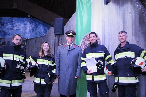 Unter den 25 teilnehmenden Trupps war auch ein Trupp aus Voitsberg mit Markus Donnelly, Victoria Fink, Michael Knöpfler und Martin Rapp. Als Bewerter fungierte HBI d. V. Hendrik Wolf. Herzliche Gratulation zur bestandenen Prüfung. Bei der Siegerehrung nahmen auch BR Ing. Klaus Gehr und ABI Alfred Jauk teil.