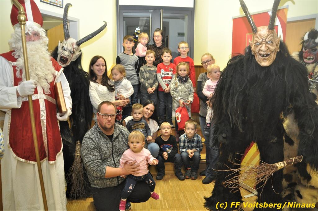 VOITSBERG, am 07.12.2019 Am Samstag, 7. Dezember 2019 versammelten sich die Kleinsten der Feuerwehrmitglieder mit ihren Eltern/Großeltern im Rüsthaus der FF Voitsberg in Erwartung des Besuches des Nikolaus und der Krampusse. Nach der Begrüßung durch Bernd Unger war es soweit. Der Nikolaus mit zwei Krampussen traten in den Raum und versetzten die Kinder in Staunen. Der Nikolaus verteilte, assistiert durch die Krampusse, an die aufgeregten Kinder Päckchen, welche von diesen wohlwollend entgegengenommen wurden. Als Erinnerung wurden viele Fotos gemacht. Im Anschluss wurden alle Anwesende zu einer kleinen Jause mit Getränken eingeladen und am „Kinderspielplatz“ wurde so manche Freundschaften und den Kindern geknüpft. Für die Vorbereitungen und der Durchführung dieser traditionellen Veranstaltung gilt der Dank im speziellen Waltraud Veigl auszusprechen, aber auch dem Kommando der FF Voitsberg für die Bereitstellung von Speis und Trank.