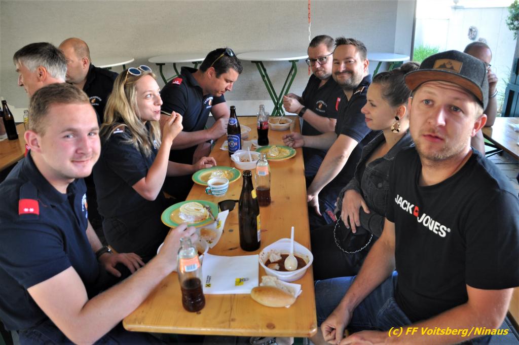 Nach der Übergabe von Erinnerungsgeschenken durch den Wehrkommandanten HBI DI (FH) Bernd Unger und seinem Stellvertreter OBI Harald Kremaucz, darunter einer Collage aus seiner über 40jährigen Feuerwehrmitgliedschaft, gab es für alle Anwesenden Kaffee mit Kuchen, Getränke und einer köstlichen Gulaschsuppe und einem gemütlichen Beisammensein.
