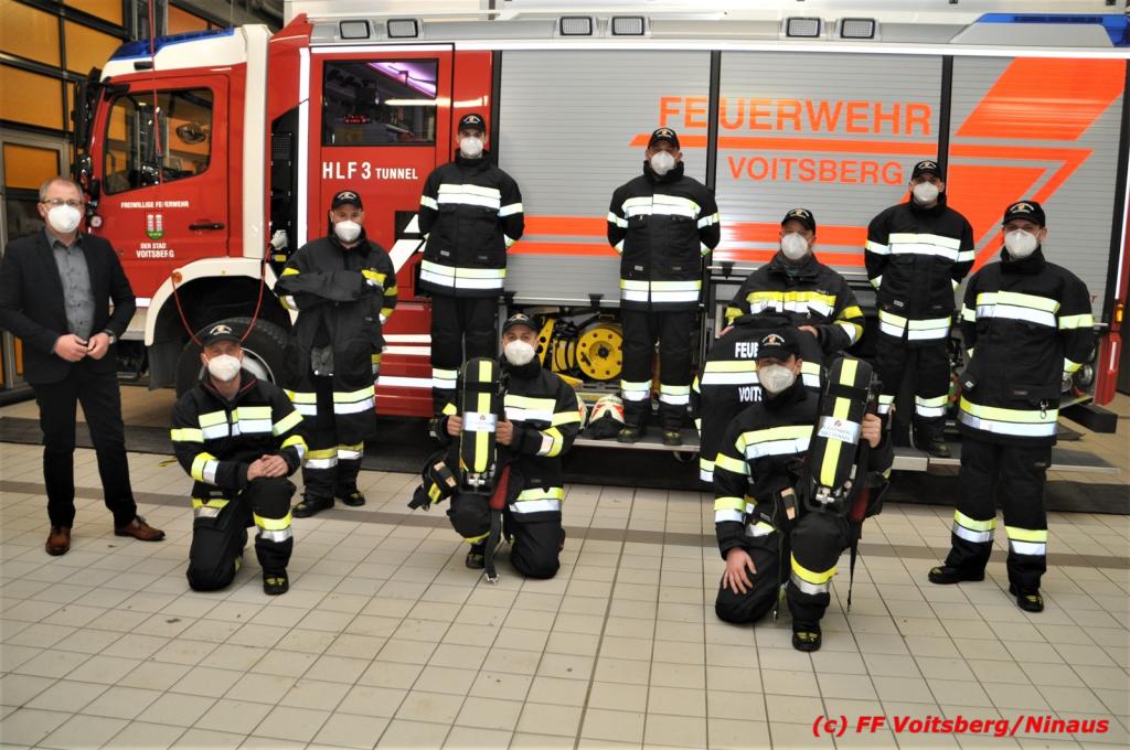 VOITSBERG, am 15.03.2021 Die Freiwillige Stadtfeuerwehr Voitsberg ist in der Einsatzstatistik der Steiermark im Vorderfeld anzufinden. Um auch eine sichere Uniformierung bei Brandeinsätzen zu gewähren, hat die Stadtgemeinde Voitsberg einen großen Teil der Einsatzkräfte mit neuen Einsatzhosen und –Jacken ausgestattet.