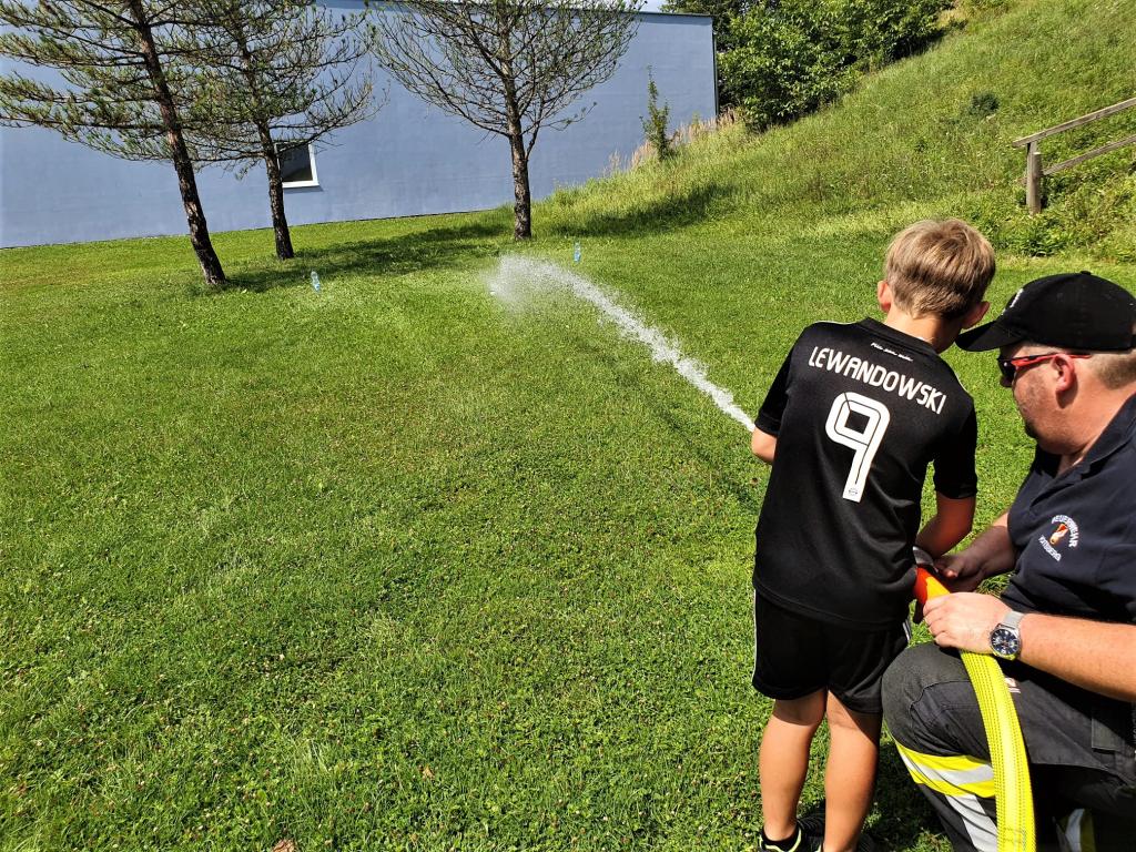Nach einer kurzen Einweisung ging es zu insgesamt fünf Stationen. Die Kinder konnten mit einer Kübelspritze und dem Strahlrohr spritzen, mit einem hydraulischen Spreizer einen Ball auf einem Verkehrsleitkegel platzieren, ein Auto mittels Hebekissen anheben und sogar selbstständig mit Feuerlöschern einen Kleinbrand bekämpfen. Weiters konnten die Feuerwehrautos von innen besichtigt werden. Von den Kameradinnen und Kameraden konnten alle Fragen der wissbegierigen Kinder und deren Eltern beantwortet werden.