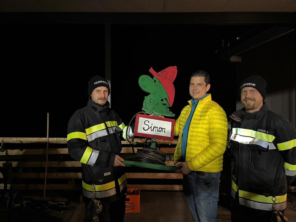 Kamerad Markus Donnelly und seine Partnerin wurden von einer Abordnung zur Geburt eines Sohnes Simon gratuliert.