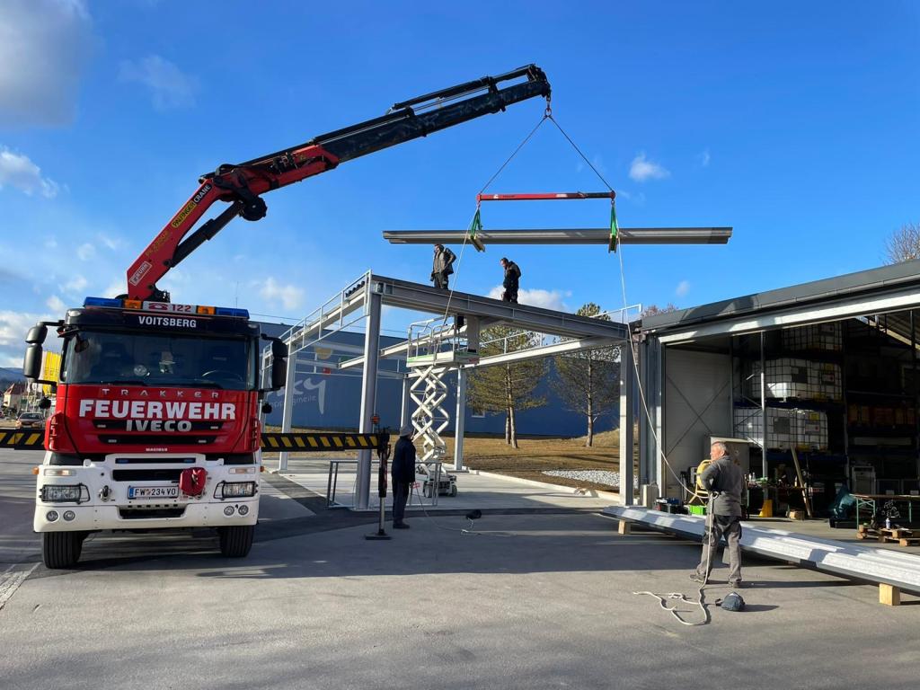 VOITSBERG, am 25.02.2022 Beim Feuerwehrhaus der Feuerwehr Voitsberg wurden in der letzten Februarwoche 2022 wieder zwei Zukunftsprojekte in Angriff genommen. Es wurde ein Zubau für die Wechselcontainer aufgestellt und weiter erfolgte die Antennenmontage für bessere Kommunikation