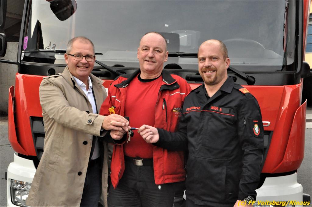 Die „offizielle Schlüsselübergabe“ fand im Beisein von Bürgermeister Mag. (FH) Bernd Osprian, Vizebürgermeister Kurt Christof, Stadtamtsdirektor Ing. Gernot Thürschweller, Bauhofleiter Günther Friedrich und dem Kommando der FF Voitsberg HBI DI (FH) Bernd Unger und OBI Harald Kremaucz statt.