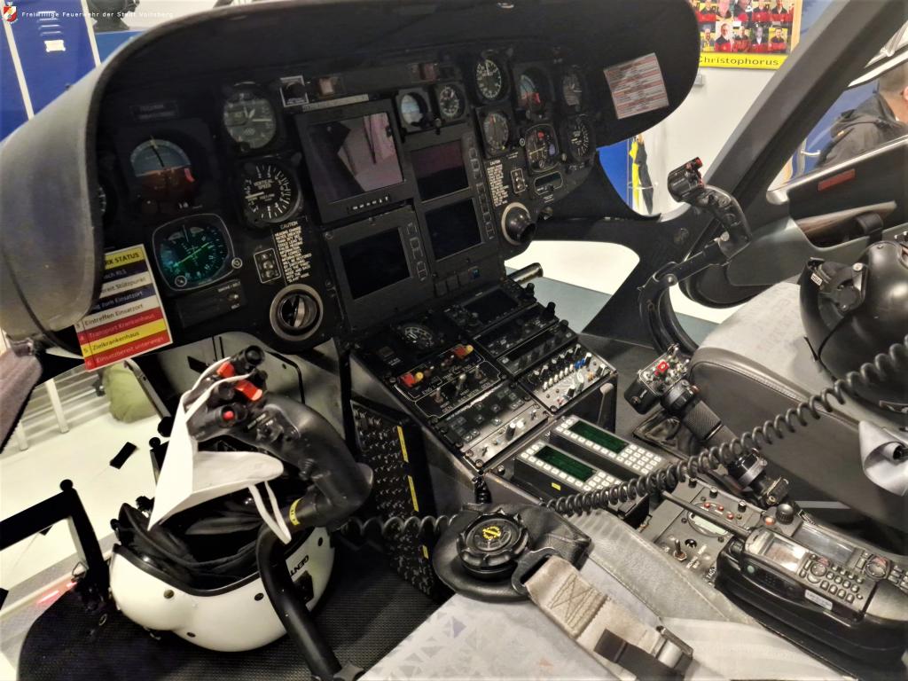 Die diensthabende Crew (Pilot Captain H. Holler, Notarzt Dr. G. Gemes, Flugretter T. Leitinger) erläuterten mit den interessierten Feuerwehrmännern / allgemeine Sicherheitshinweise (Sicherheitsabstände, Annäherung, ...) / Möglichkeiten zur Brandbekämpfung / Personenrettung im Falle einer Havarie (Crew und Patient) / Umgang mit Notöffnungen / Unterstützung in der Be- und Entladung von Patienten / Einweisung zur Landung / Anforderungen an Landeplätze