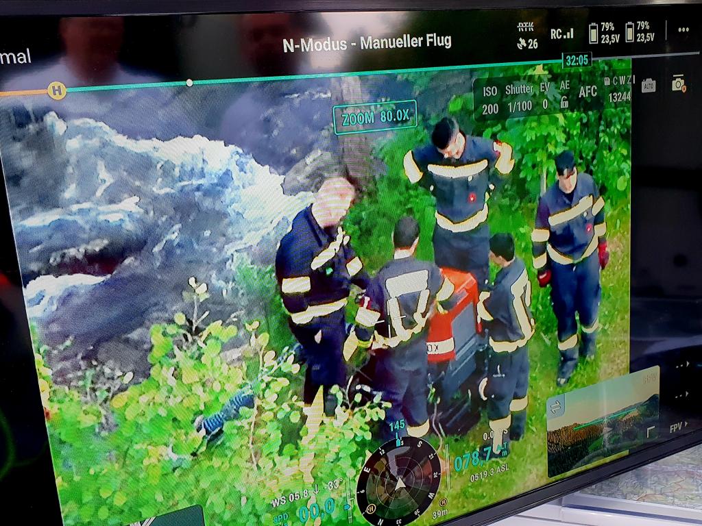 Ebenfalls war das Rote Kreuz mit 2 Drohnenpiloten in diese Übung eingebunden. Die Drohne mit Wärmebildkamerafunktion kann uns im Einsatzfall bei der Lageerkundung und beim Aufspüren von Glutnestern behilflich sein.