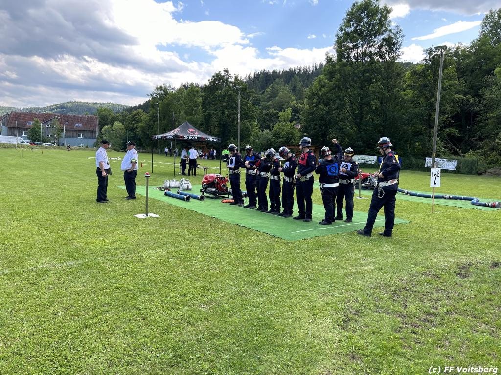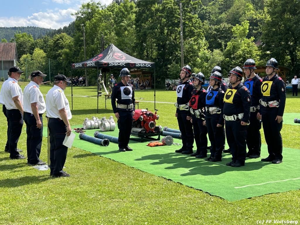 VOITSBERG, am 17.06.2023 „Brandobjekt geradeaus, Wasserentnahmestelle der Bach, Verteiler nach zwei B–Längen, Angriffstrupp legt Zubringleitung mit je zwei C–Längen, erstes und zweites Rohr vor.“ lautete der Angriffsbefehl für 48 Gruppen beim diesjährigen Bereichsfeuerwehrleistungsbewerb in Södingberg.