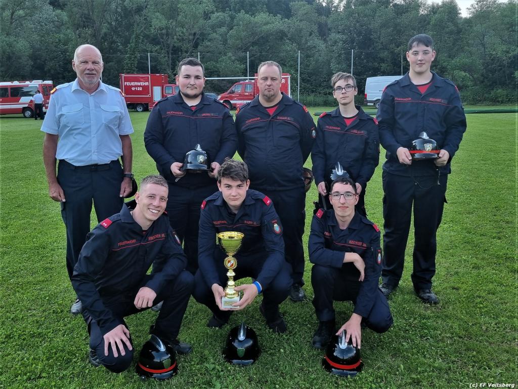 Unsere Feuerwehr nahm mit einer Gruppe in Bronze und Silber ebenfalls an diesem Wettkampf teil. Beim Durchgang in Bronze kassierten wir leider 20 Fehlerpunkte und konnten so nicht um die vorderen Plätze mitkämpfen. In Silber konnte sich unsere Gruppe mit einer tollen Leistung und 0 Fehlerpunkten den Sieg in der Wertungsklasse Silber A Bereich Voitsberg sichern. Bei der anschließenden Siegerehrung konnte BI René Sorger den Siegerpokal aus den Händen von Bereichsfeuerwehrkommandant BR Ing. Klaus Gehr entgegennehmen. Unsere beiden Kommandanten nahmen gemeinsam mit den Führungskräften des Abschnittes 2 ebenfalls am Bewerb teil. Ein Dank gilt auch den 4 Kameraden, welche im Bewerterstab tätig waren.