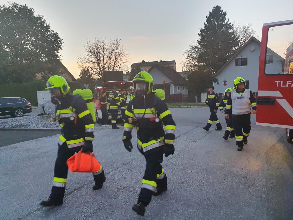 Umgehend wurde die FF Krems nachalarmiert und ein Atemschutztrupp begab sich zur Menschenrettung und Brandbekämpfung ins stark verrauchte Gebäude. Gleichzeitig wurde von einem Überflurhydranten in der Rosenberggasse eine Zubringleitung zum HLF4 Voitsberg aufgebaut. Ein Atemschutztrupp der FF Krems begab sich wenig später ebenfalls in die Lackierhalle und unterstützte den bereits eingesetzten Trupp bei der Personensuche. Nach rund einer halben Stunde konnte Brand aus gegeben werden. Alle 6 Vermissten wurden gerettet und den Feuerwehrsanitätern übergeben. Im Anschluss wurde die Halle mit 3 Drucklüftern belüftet.
