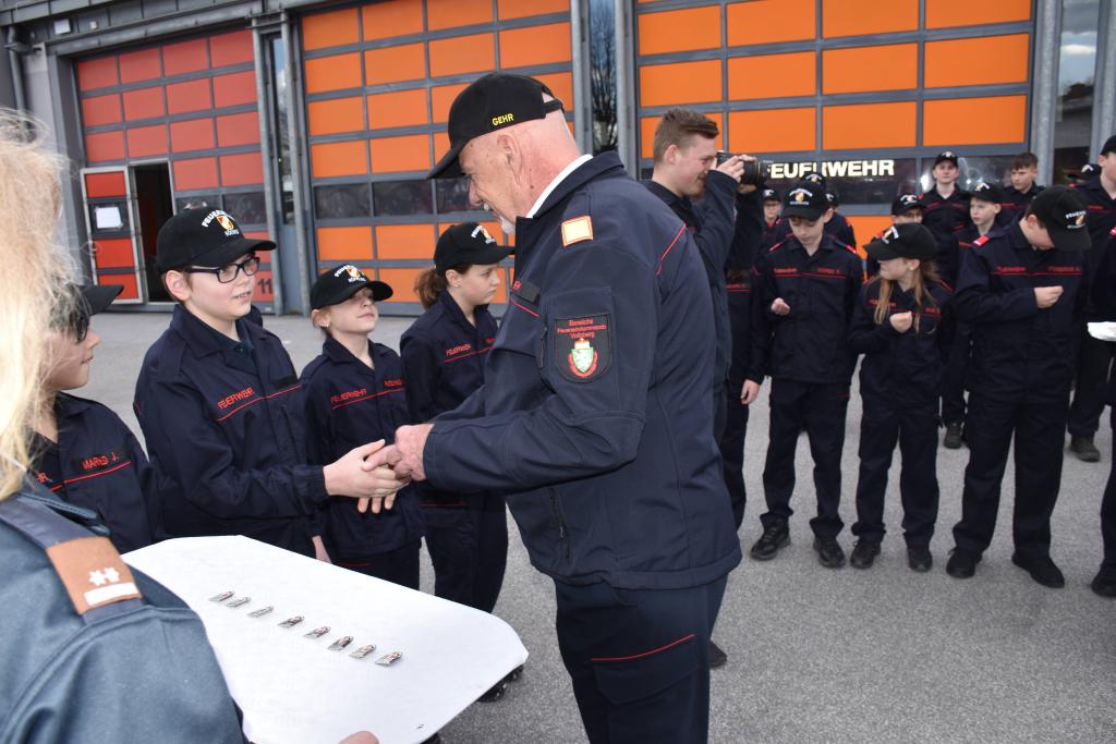 Unsere Feuerwehrjugend war mit 17 Teilnehmern stark vertreten und zeigte starke Leistungen. Am Ende des Bewerbes wurden vom Bereichsjugendbeauftragten BI René Sorger und EABI Alfred Jauk die begehrten Abzeichen vom Wissenstest in Bronze (6), Silber (1) und Gold (3) sowie vom Wissenstestspiel in Bronze (6) und Silber (1) überreicht.