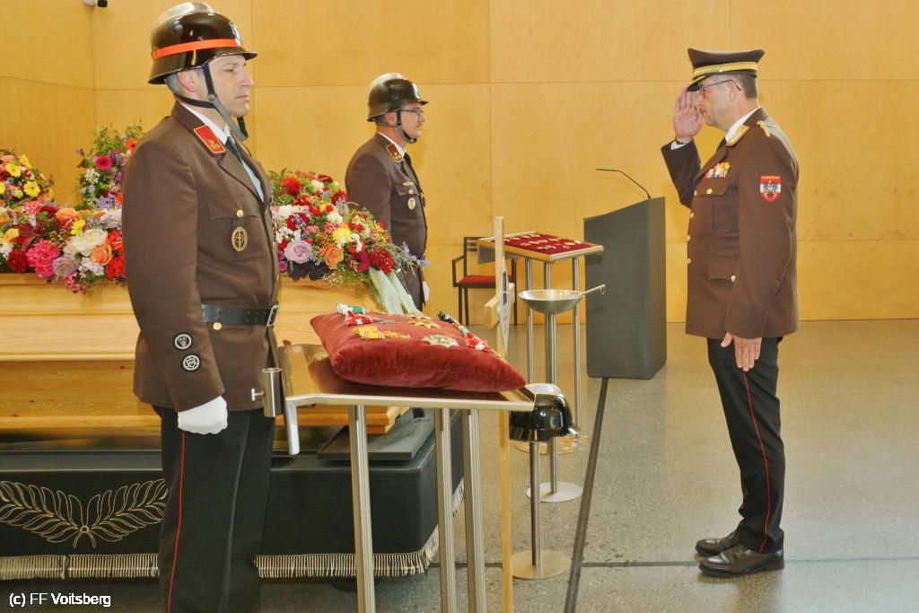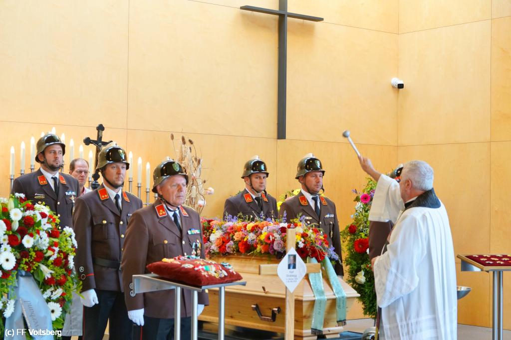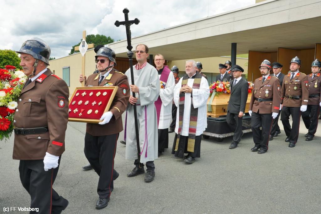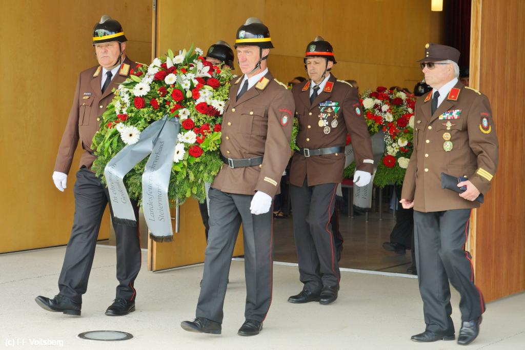 Die Trauergemeinde umfasste sowohl die steirische als auch die österreichische Feuerwehrspitze. An der Spitze aller Trauergäste standen Landesfeuerwehrkommandant Reinhard Leichtfried, Feuerwehrpräsident Robert Mayer und Bereichsfeuerwehrkommandant LBDS Christian Leitgeb, Abordnungen aus den Bezirken und des Bereichsfeuerwehrverbandes Voitsberg und seiner FF Voitsberg, welche unter dem Kommando von BR Ing. Klaus Gehr der Trauerfeier einen würdevollen Rahmen verliehen.
