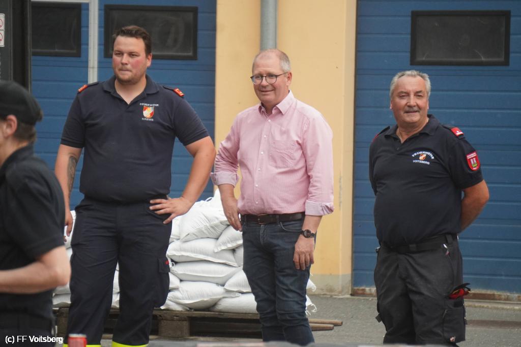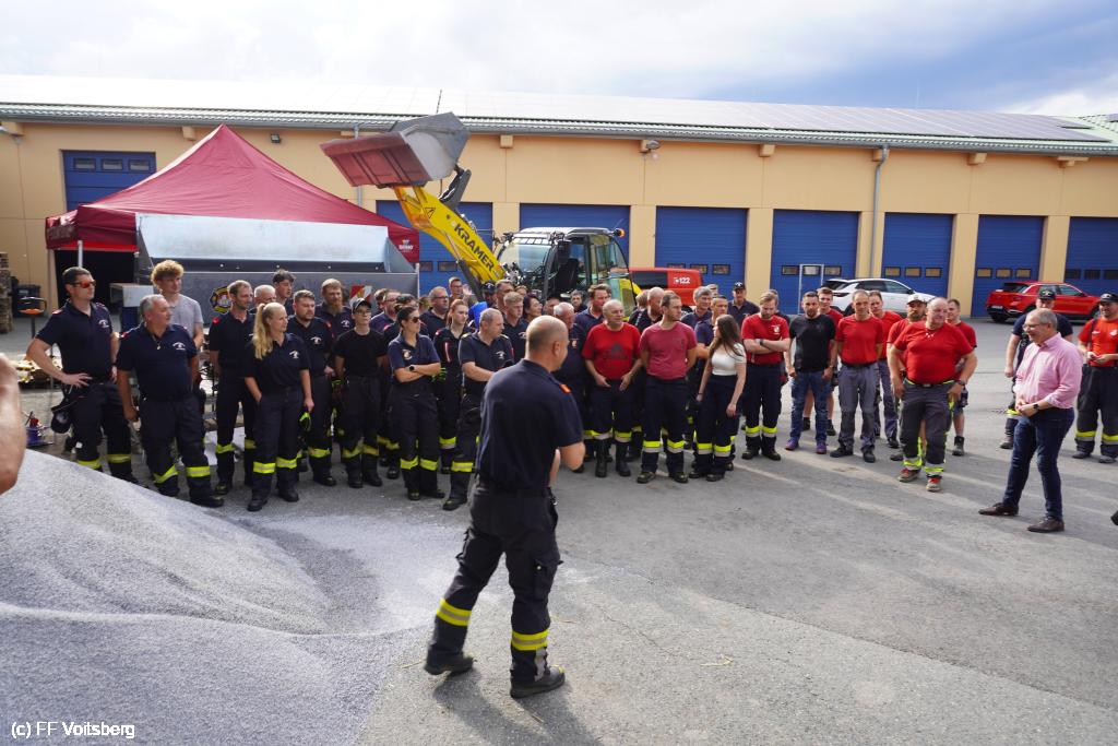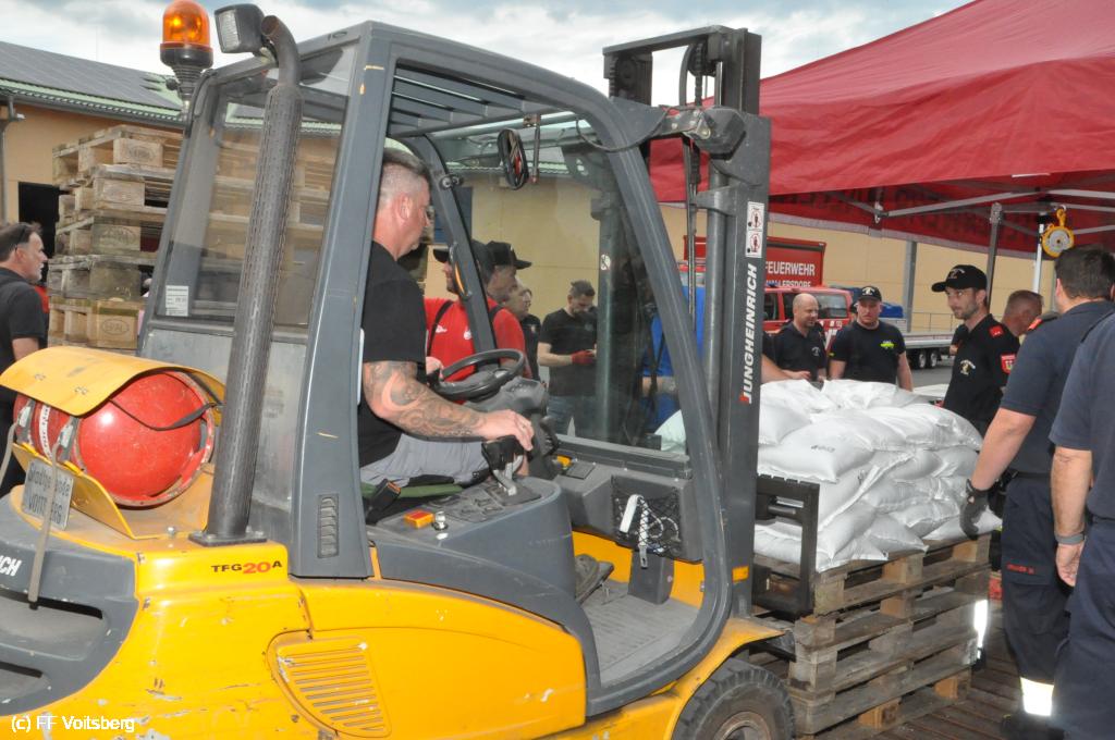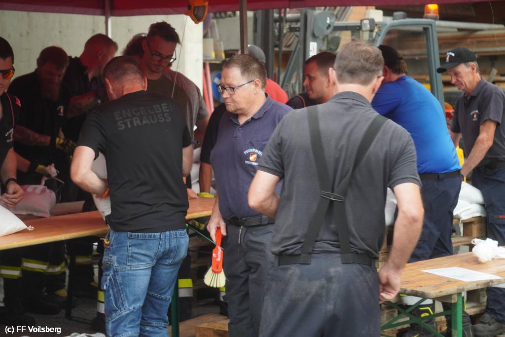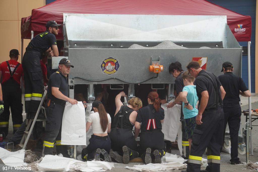 43 Personen aus den Feuerwehren Voitsberg und Krems, Mitarbeiter des städtischen Bauhofes Voitsberg sowie KameradInnen der FF Hallersdorf, welche für den BFV Voitsberg der Katastrophenstützpunkt ist, füllten am 17. Juni 2024 am Bauhof in Voitsberg tausende Sandsäcke mit der Sandsackfüllanlage für die Voitsberger Bevölkerung ab, um den Bewohnern die Möglichkeit zu geben, sich selbst vor Hochwasser zu schützen. Jeder kann bis zu 10 Sandsäcke gratis erwerben, bei sich lagern und im Unwetterfall Erstmaßnahmen von selbst setzen.