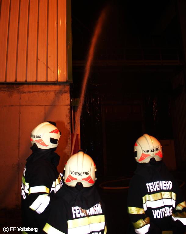 Übungsannahme war ein Brand in einer Werkhalle bei der Firma Technoglas, welcher sich rasch ausbreitete und dadurch ein Übergreifen des Brandes auf umliegende Gebäude drohte. Weil sich in der Werkhalle noch vier Personen befanden, wurde sofort nach Eintreffen der Feuerwehren die Menschenrettung mittels schwerem Atemschutz durchgeführt und der Abschnittsalarm durch Einsatzleiter HBI Bernd Unger ausgelöst. Parallel dazu wurde die fix bestehende Löschwasserleitung von den Feuerwehren befüllt um genügend Löschwasser bereitzustellen.