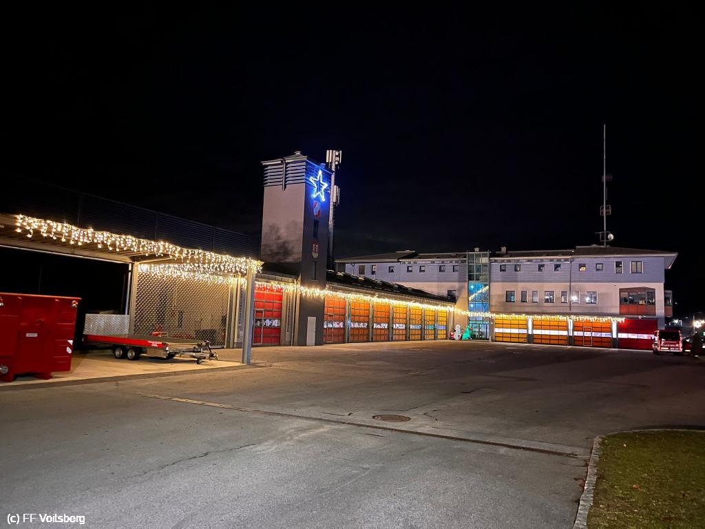 VOITSBERG, am 29.11.2024 Seit 29.11.2024 Abend erstrahlt das Feuerwehrhaus der Stadtfeuerwehr Voitsberg im weihnachtlichen Glanz.