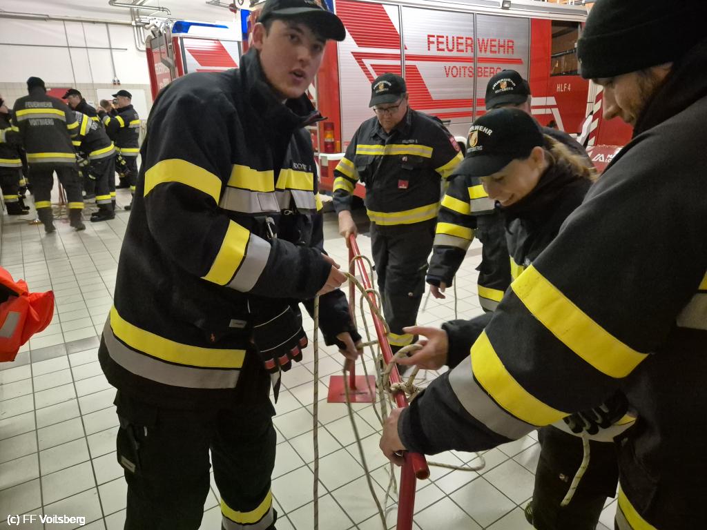 VOITSBERG, am 03.02.2025 Am Abend des 03. Februar 2025 fand im Zuge der Winterschulung eine Ausbildungsübung mit dem Schwerpunkt Knotenkunde statt.