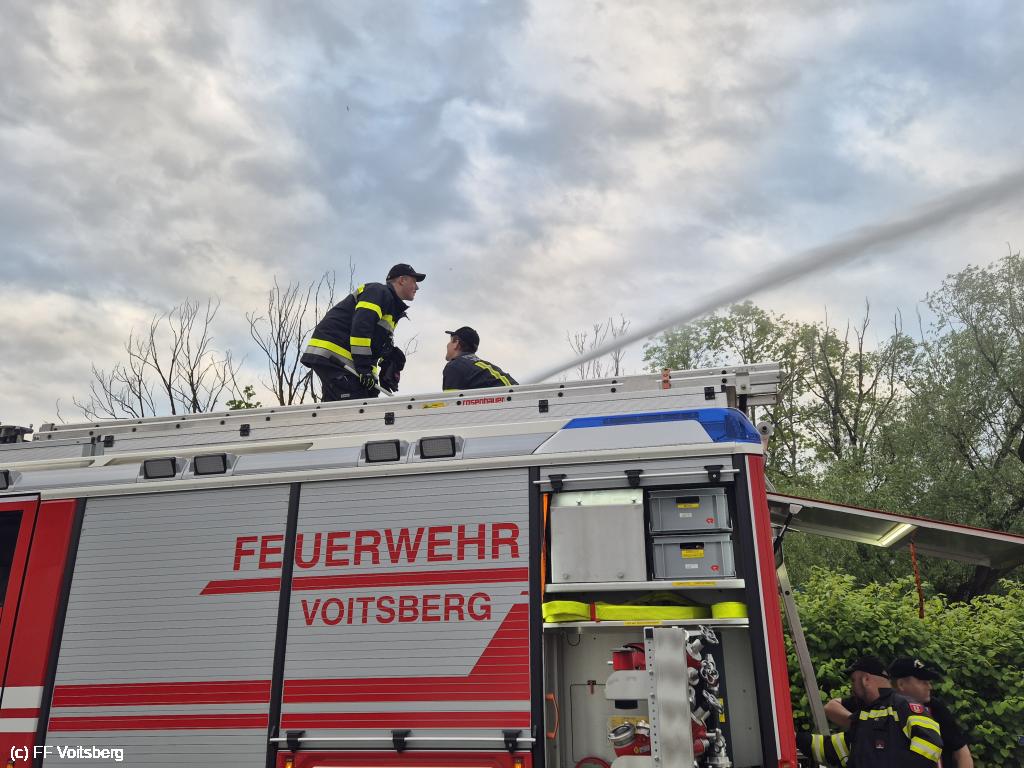 VOITSBERG, am 12.05.2025 Am Abend des 12.05.1025 wurde die erste Ausbildungsübung mit dem neuen Wechselaufbaucontainer Tank abgehalten.