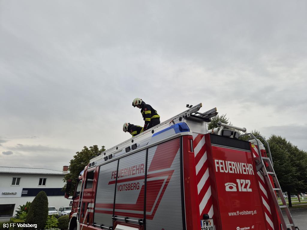 VOITSBERG, am 04.08.2025 Am Abend des 04. August 2025 wurde die Rettung von Personen über den Leiterweg beübt. Übungsleiter BM Alexander Wallner konnte dazu zahlreiche Kameradinnen und Kameraden begrüßen.
