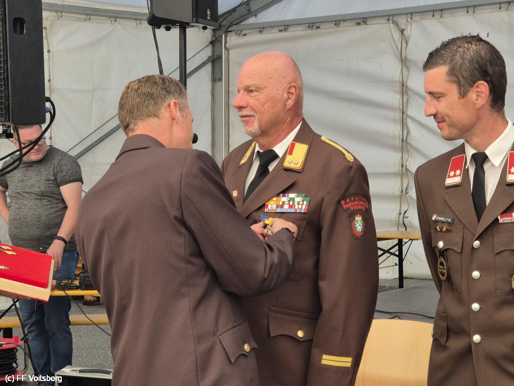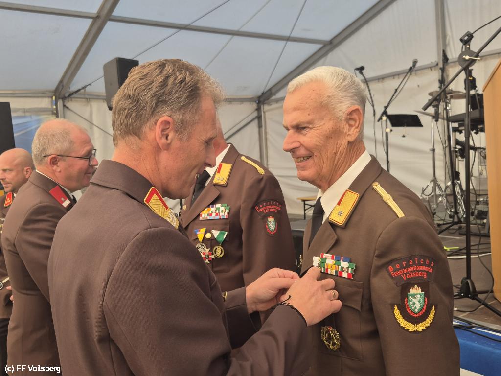 Unserem langjährigen Kommandanten BR a. D. Ing. Klaus Gehr wurde die Medaille für 50-jährige und EABI Rudolf Gargitter die Medaille für 60-jährige verdienstvolle Tätigkeit auf dem Gebiete des Feuerwehr und Rettungswesens verliehen.