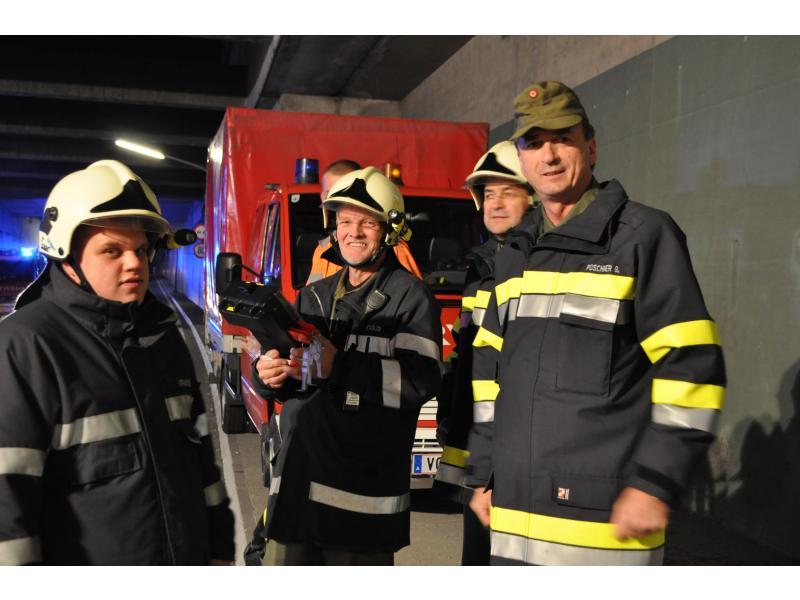 VOITSBERG, am 04.11.2013 An dieser Übung nahmen die im Brandfall laut Alarmplan vorgesehenen Feuerwehren Voitsberg, Krems, Bärnbach und Rosental teil. Nach einer theoretischen Einweisung des Alarmplanes im Rüsthaus Voitsberg wurde um 19:58 Uhr seitens der Landesleitzentrale Florian Steiermark der Alarm ausgelöst. Sinn dieser Übung waren das Kennerlernen der Gegebenheiten im Bereich des Tunnels, die Überprüfung der Kommunikation zwischen den Einsatzkräften und die praktische Arbeit. Von der gut gelungenen Übung konnten sich LFR Huber, BR d. F. Robert Klampfl und ABI Gressenberger seitens des BFV Voitsberg überzeugen. Die Einsatzleitung lag in den Händen von HBI Ing. Klaus Gehr und OBI Michael Münzer. Nach dem erfolgreichen Abschluss wurde alle Beteiligten zur Übungsnachbesprechung und Verpflegung ins Rüsthaus Voitsberg eingeladen.