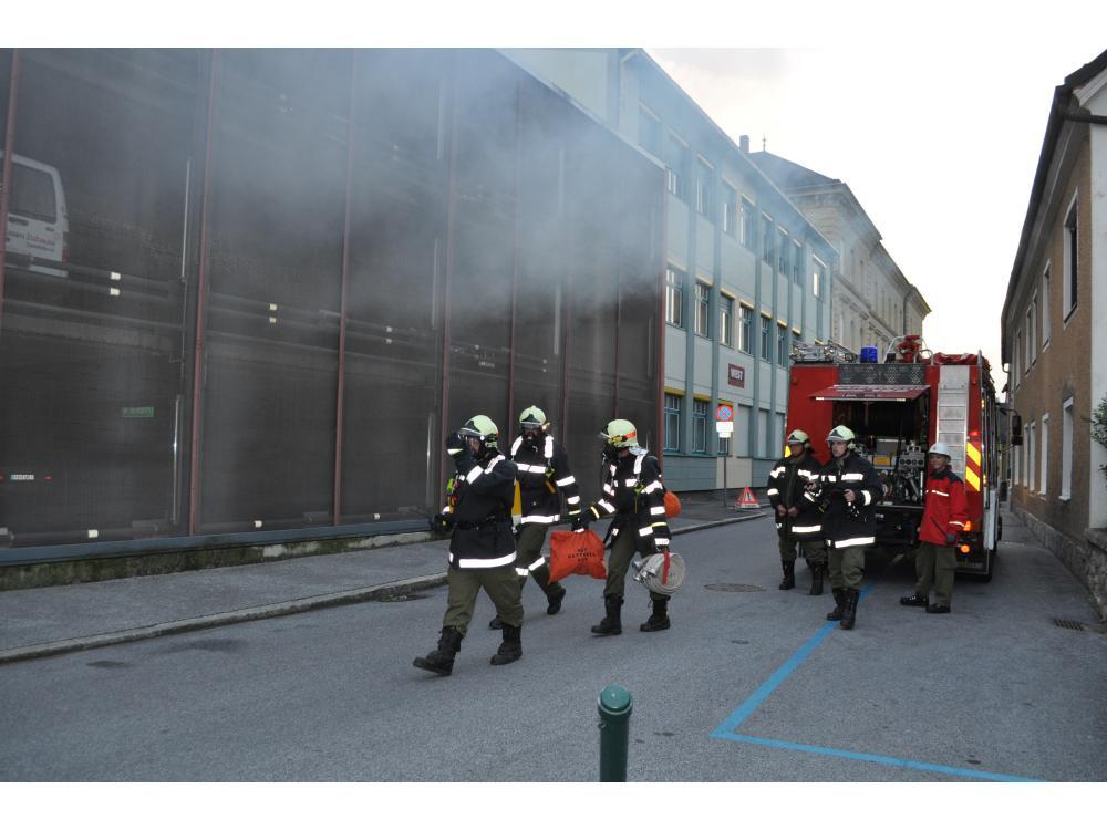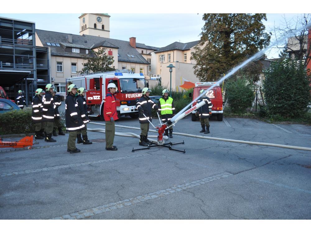 VOITSBERG, am 17.09.2012 Übungsannahme war ein Brand eines PKW mit einer im Fahrzeug befindlichen Person. Bergung und Erstversorgung der Person unter schwerem Atemschutz und Transport ins Freie. Löschen des Fahrzeuges ebenfalls unter Atemschutz und u.a. die Verwendung der Steigleitung im Parkhaus. Bergung des PKW mittels Abschlepproller unter Sicherung mit MRAS. Abtransport des KFZ mittels Abschleppachse.
