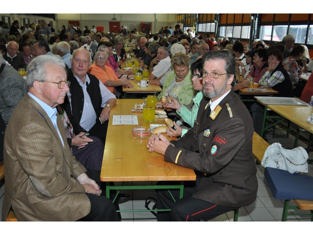 VOITSBERG, am 26.08.2012 Sehr zahlreich war der Besuch des Frühschoppens. Das Schneiderwirt Trio brachte Schwung in die bis zum letzten Platz gefüllte Fahrzeughalle. Der Andrang war so groß, dass man in eine zweite kleinere Garage die Festgäste bemühen mussten. Sehr groß war auch der Besuch von Ehrengästen, welche vom Wehrkommandanten HBI Klaus Gehr begrüßt wurden: Stadtpfarrer Dechant Dr. Erich Linhardt, Bürgermeister Ernst Meixner, Vizebürgermeister Walter Gaich, die Stadträte Franz Sachernegg und Horst Kovacic, einige Gemeinderäte aus Voitsberg, OBR Engelbert Huber, die Vertreter der Polizei, ELBD Karl Strablegg, ELFR Erwin Draxler, EABI Hermann Ruprechter und Abordnungen von Wehren aus dem Bezirk. Besonders stolz waren wir aber über den so zahlreichen Besuch der Bevölkerung, wofür wir uns bedanken möchten.