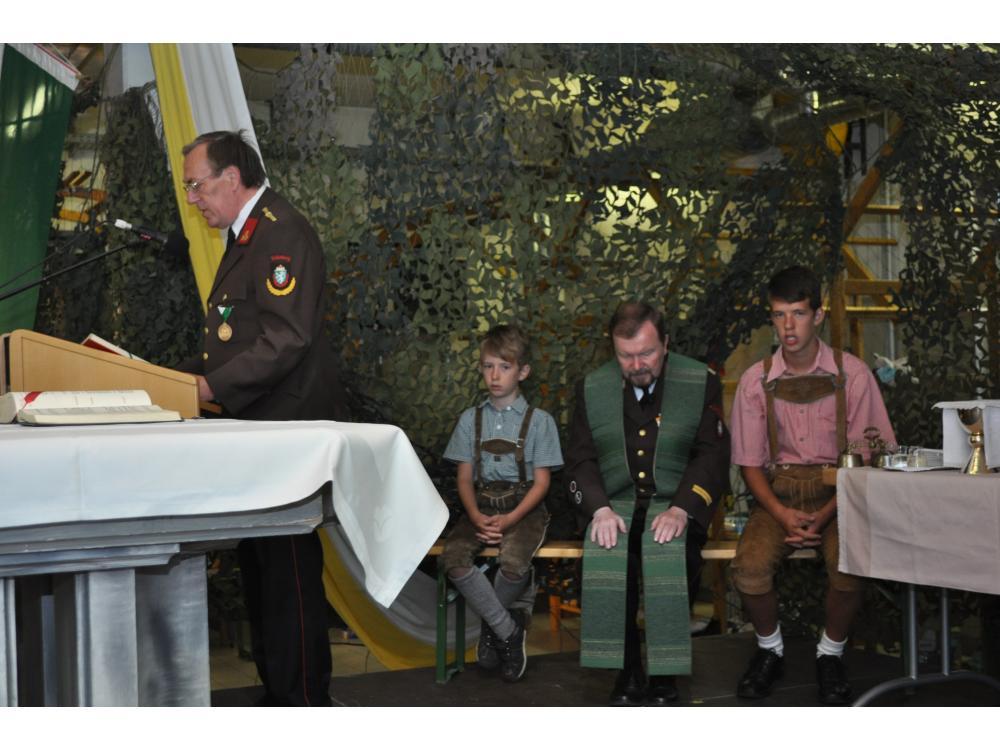 VOITSBERG, am 26.08.2012 Bereichsfeuerwehrkurat Dechant Dr. Erich Linhardt zelebrierte, musikalisch umrahmt von einer Bläsergruppe der Werkskapelle Bauer, die Feldmesse. Diesmal war der Wettergott nicht auf unserer Seite, dennoch konnte uns auch dies nicht aus der Ruhe bringen. Die vielen Besucher konnten alle unter Dach die Feldmesse miterleben.