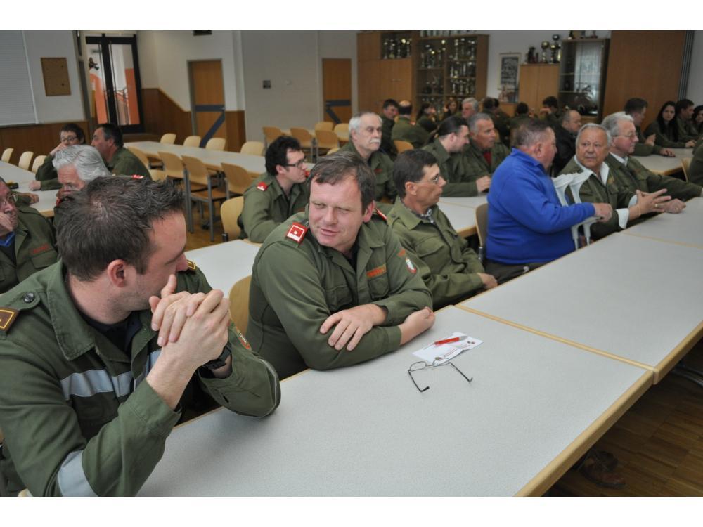 VOITSBERG, am 16.04.2012 Das Kommando (HBI Ing. Gehr Klaus und OBI Münzer Michael) teilte der fast zur Gänze anwesenden Mannschaft die Einteilung der Züge bzw. Gruppen, sowie der Funktionäre mit.